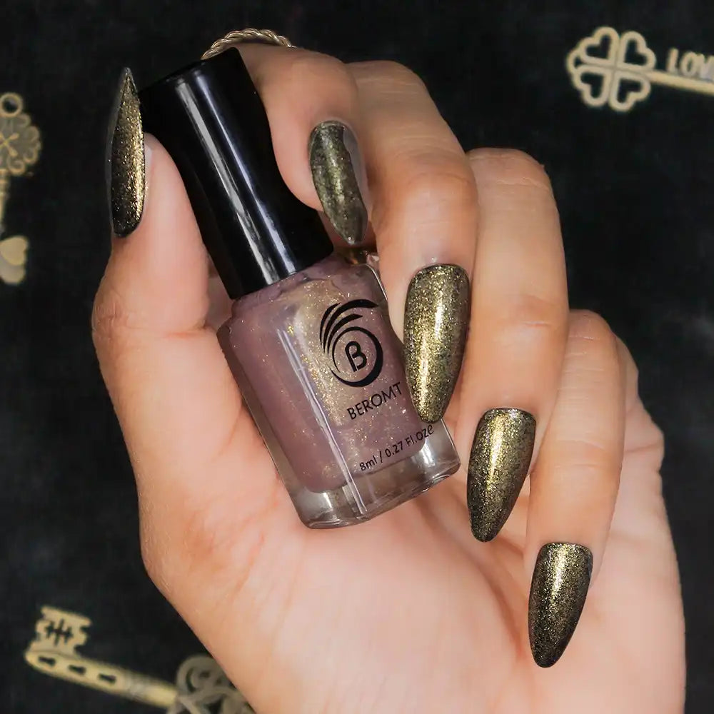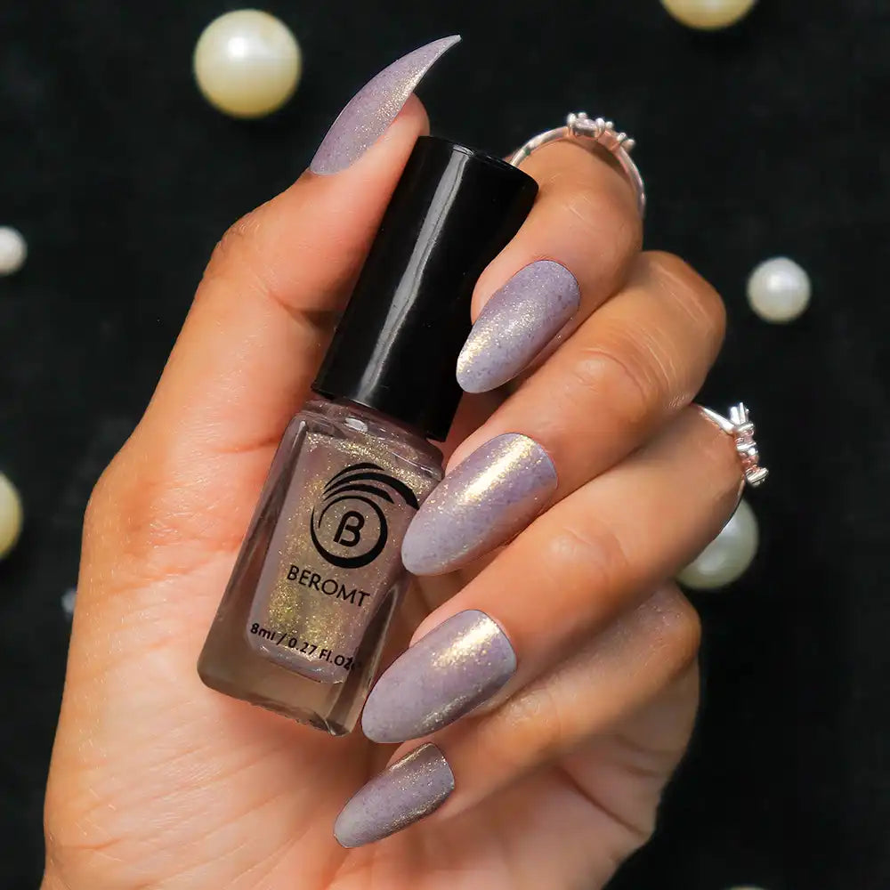 With a touch of diamond magic in a delicate pink shade, Beromt’s Light Pink Princess shade adds a subtle, feminine pastel sheen to your nails.