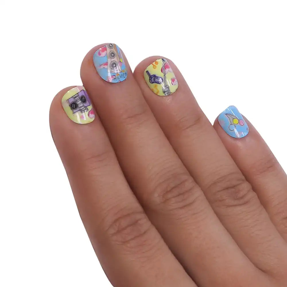 Note - Pack Contains- 12 Pcs Nails of various sizes, Jelly Glue Stickers Sheet of 12 Pcs, Nail Cuticle Stick, Nail Filer, Nail Cleaning Sheet