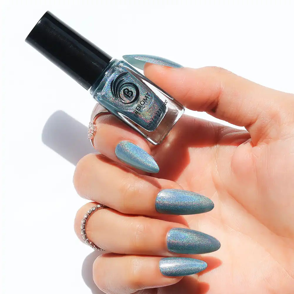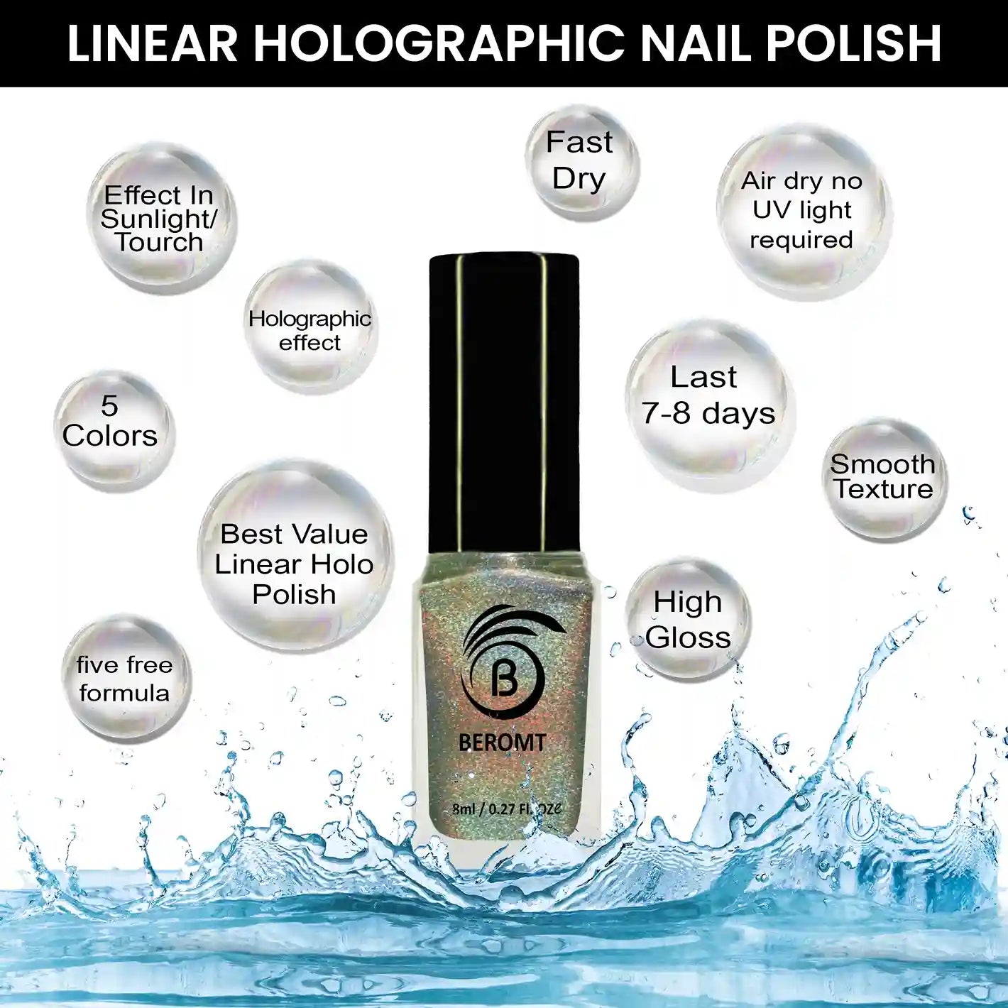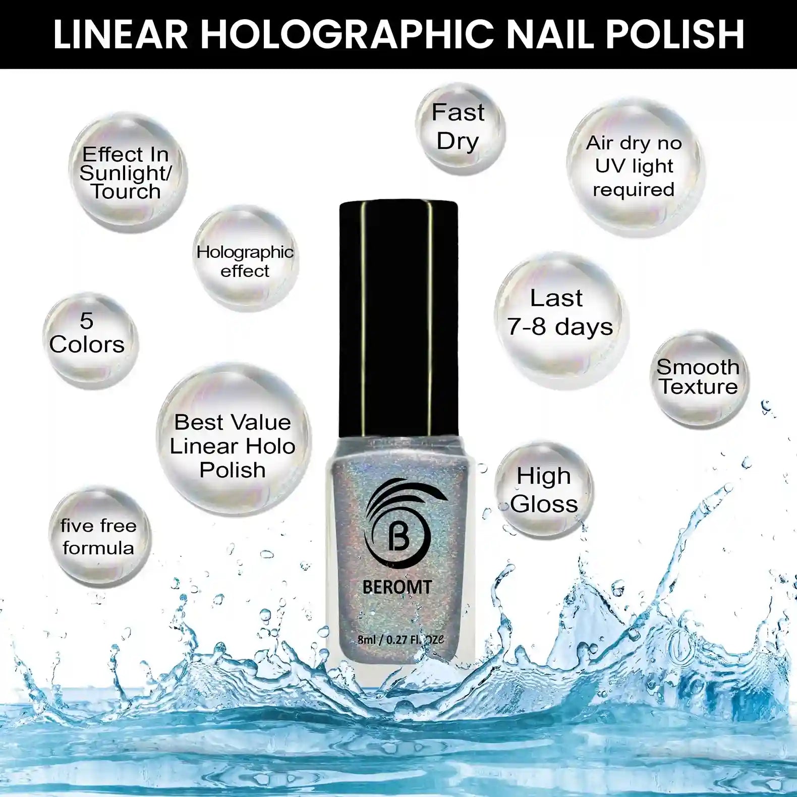 To remove our Liner Holographic Nail Polish, use a regular Beromt nail polish remover. and cotton pads or balls. Gently saturate the cotton with the remover and press it onto the nail for a few seconds to allow the polish to soften. Then, wipe away the polish in a gentle, sweeping motion. Repeat as necessary until all traces of the polish and holographic effects are removed.