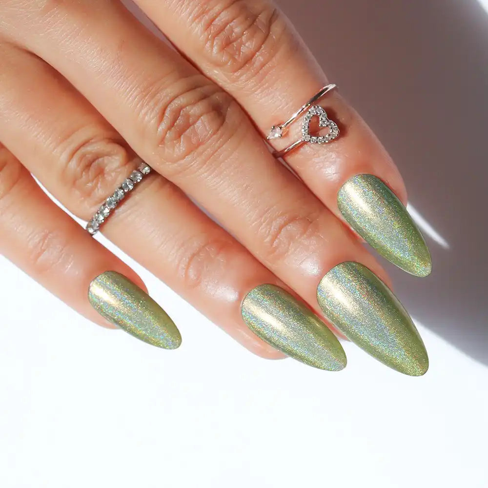 When sunlight or strong light from a ring light reflects on your nails, it creates a natural prismatic effect that seamlessly blends with a high-gloss formula. This allows you to effortlessly achieve a salon-quality finish due to its smooth application.