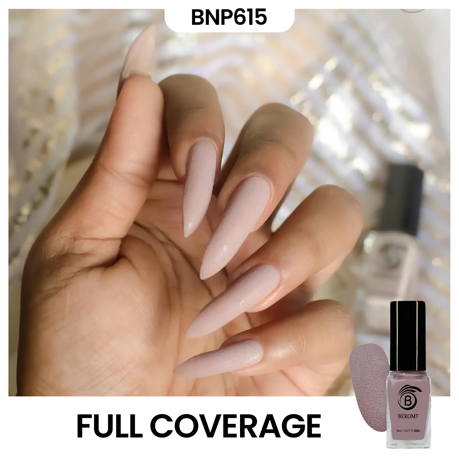• All Beromt Nail Polishes come with a round cut brush which is great for a full-proof, perfect manicure shape around the cuticles without too much effort. This brush allows quick application.