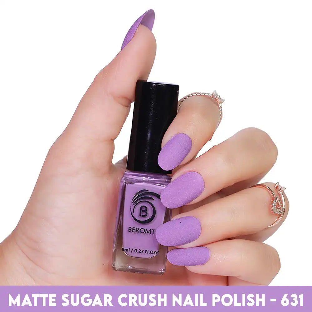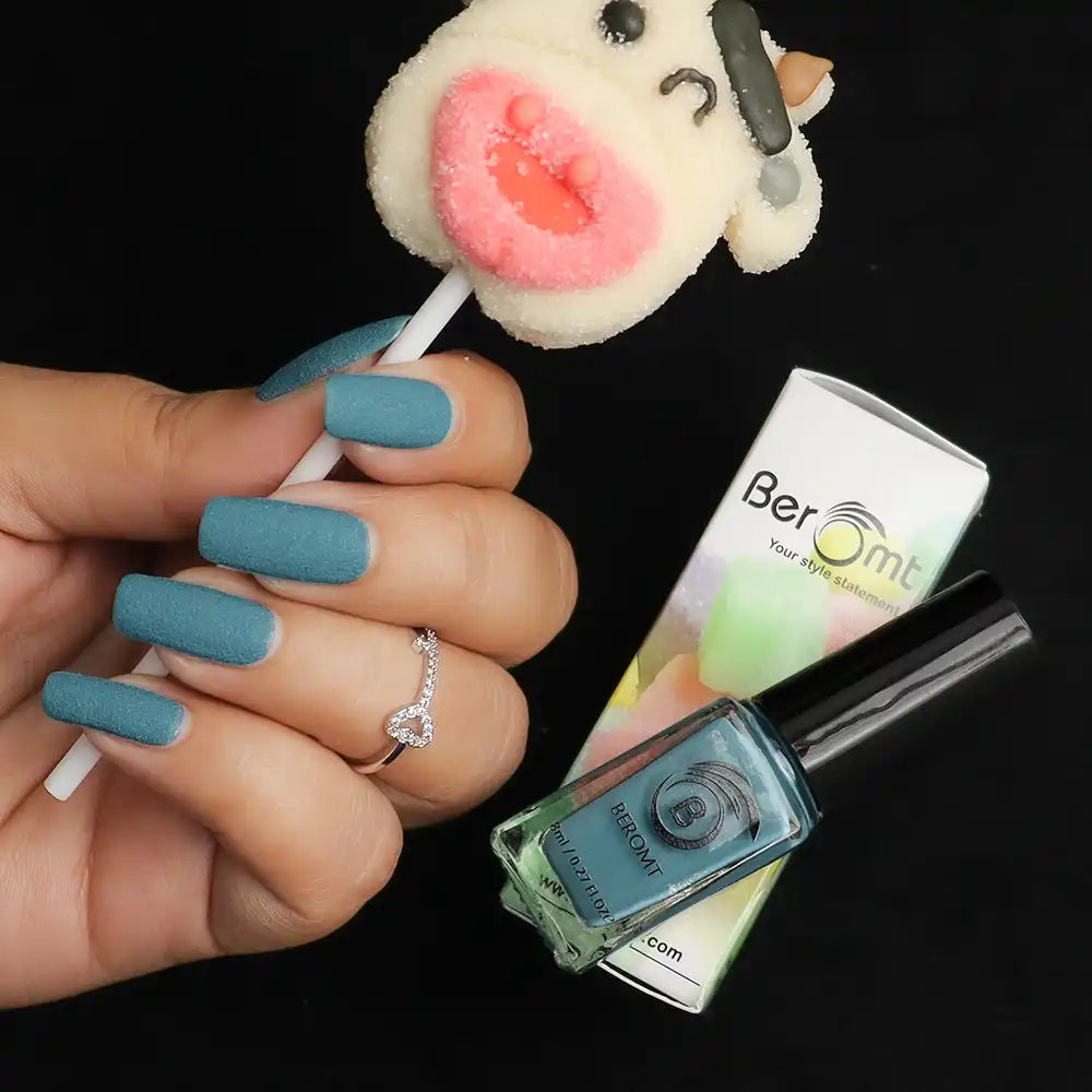 Removing Matte Sugar nail polish is similar to removing regular nail polish. Use a cotton ball or pad soaked in Beromt nail polish remover and gently press it onto the nail surface. Allow the remover to dissolve the polish, then swipe it off the nail, repeating as necessary until all traces of polish are removed.