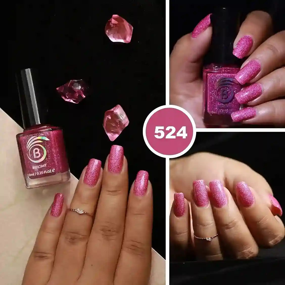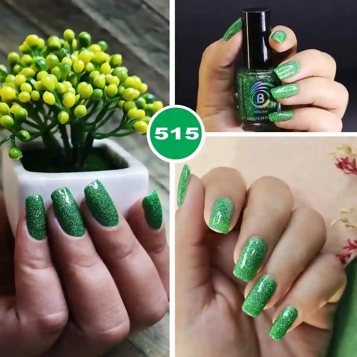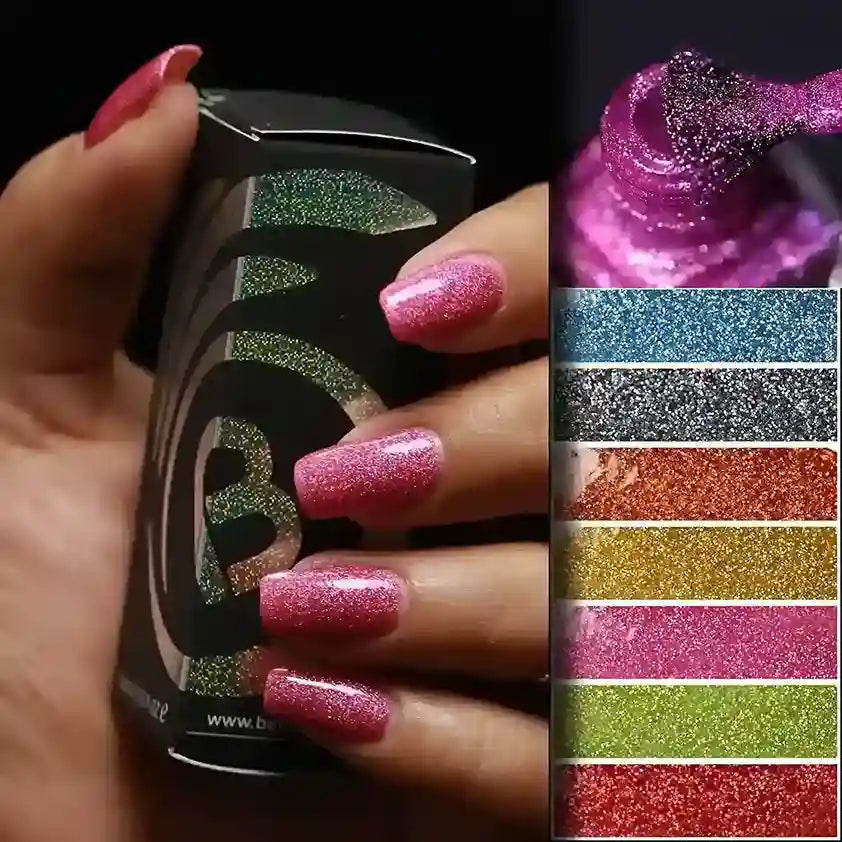 Looking for a novelty polish with a fun look for those special occasions? Then check out the unique BEROMT Holographic nail polish. These polishes as iridescent, and the array of colors that are produced with the play of light on them creates fascinating effects. This effect is due to microfine particle called SPECTRAFLAIR which gives nice play of light. One thing is for sure; your nails will be noticed and commented on! Turn on your mobile flashlight, focus it on your holo nails and watch the beautiful holographic effect come alive. Shine 0n!!