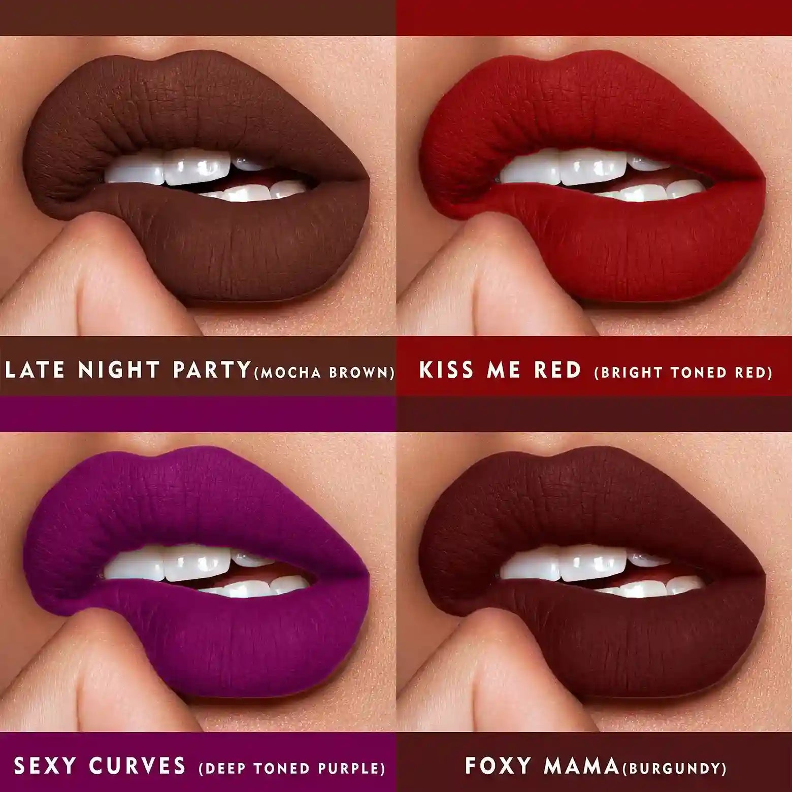 Party Matte Minis Set comes with four lovely matte shades perfect for party wear. Just a single swipe of this Mini Matte Lipstick is enough to lend full coverage and excellent colour payoff. These liquid lipsticks will become your favourites due to their long-lasting formula and all-day comfortable wear. The classy, travel-friendly box is pocket-friendly, sleek, super stylish and just so right for carrying makeup and applying it on-the-go.