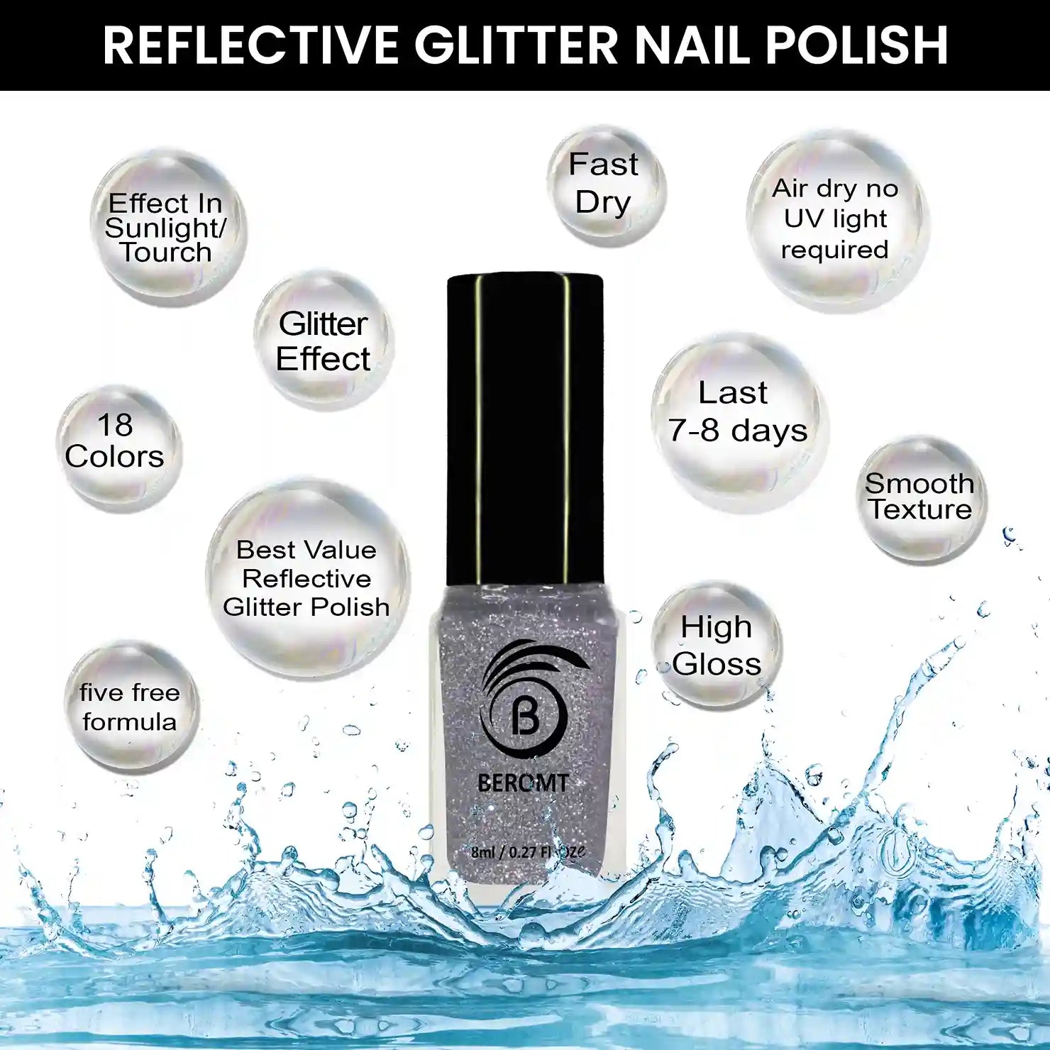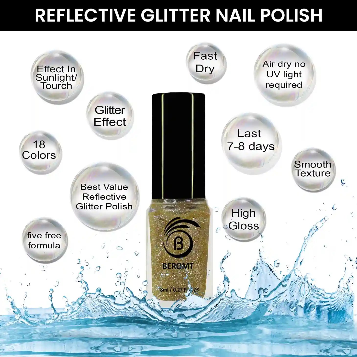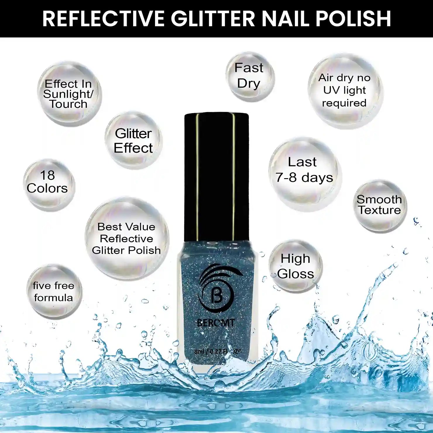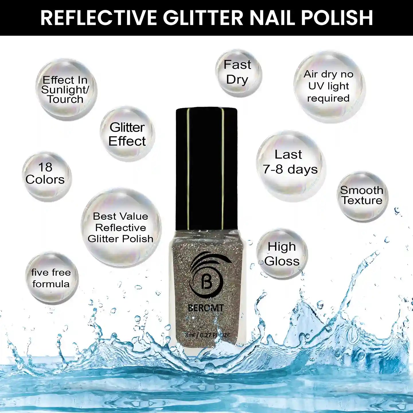Our Reflective Glitter Nail Polish is versatile and can be worn for both everyday use and special occasions. Whether you're adding a touch of sparkle to your everyday look or glamming up for a night out, our reflective glitter polish will make your nails shine bright.