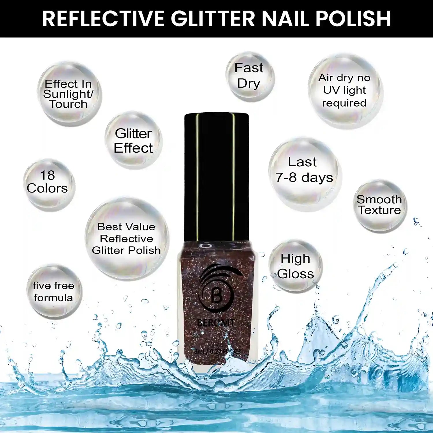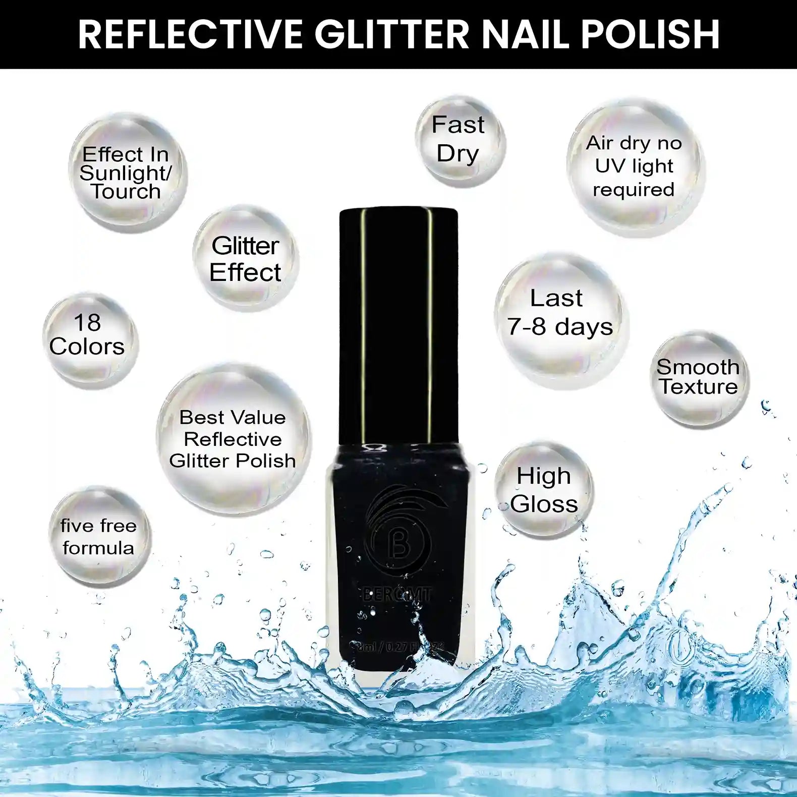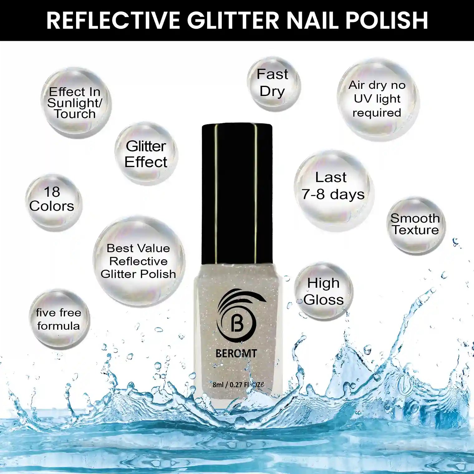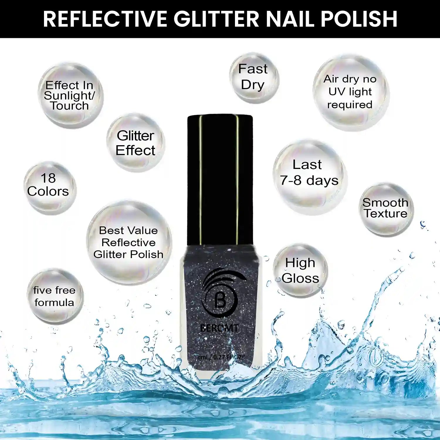 Our Reflective Glitter Nail Polish is versatile and can be worn for both everyday use and special occasions. Whether you're adding a touch of sparkle to your everyday look or glamming up for a night out, our reflective glitter polish will make your nails shine bright.