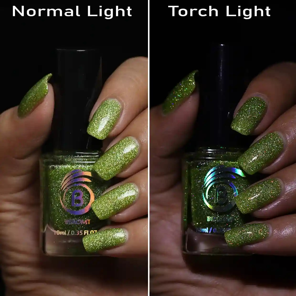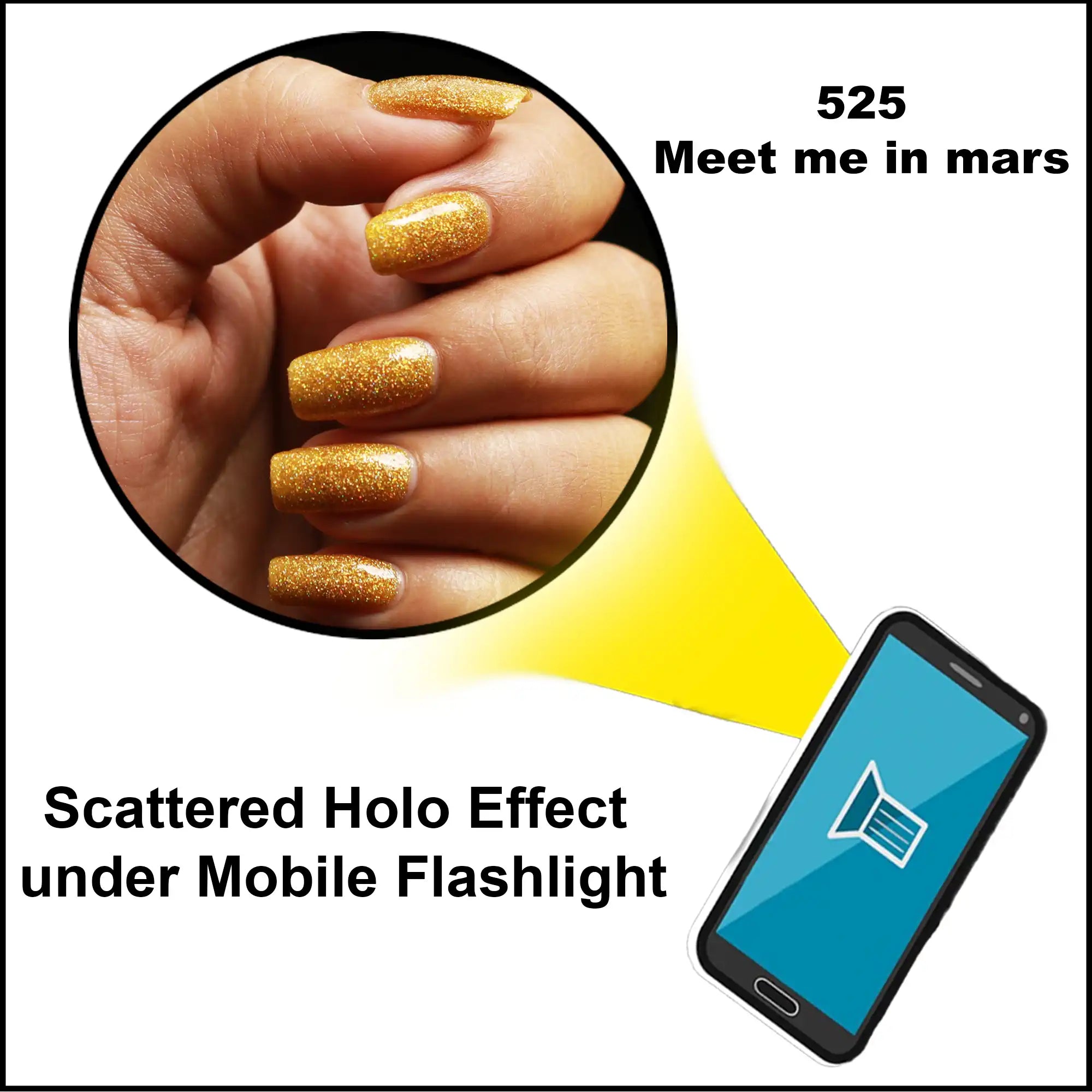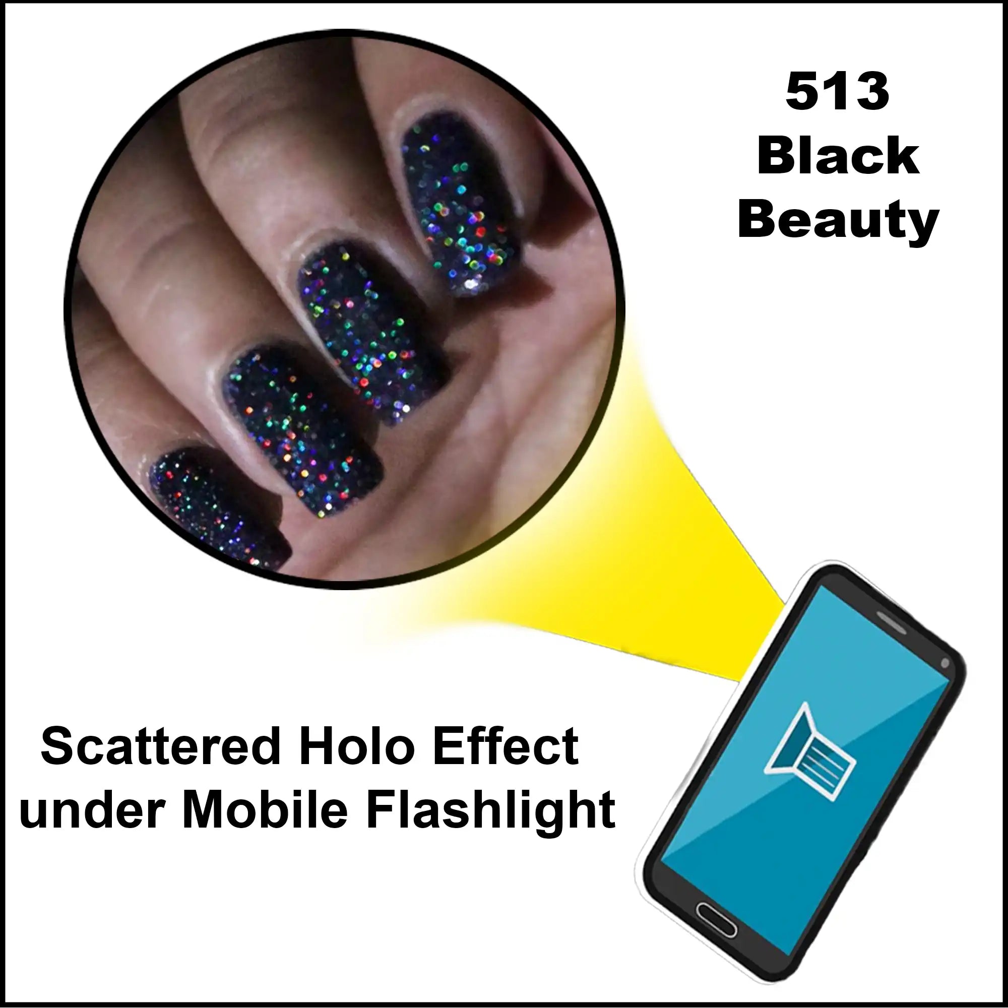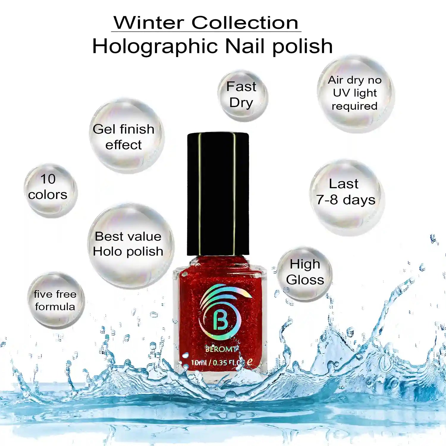 Note- Holo graphic polishes look best under direct light, such as sunlight or strong indoor bulbs, to bring out the prismatic rainbow effect.