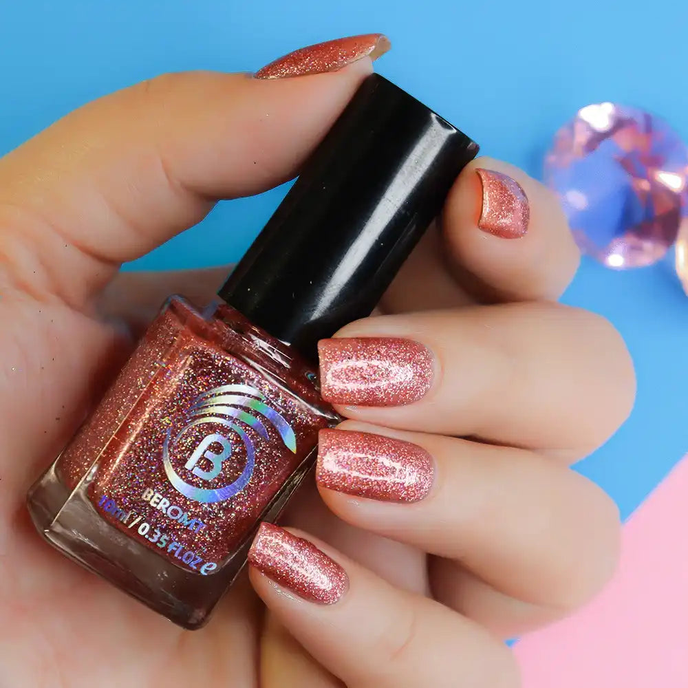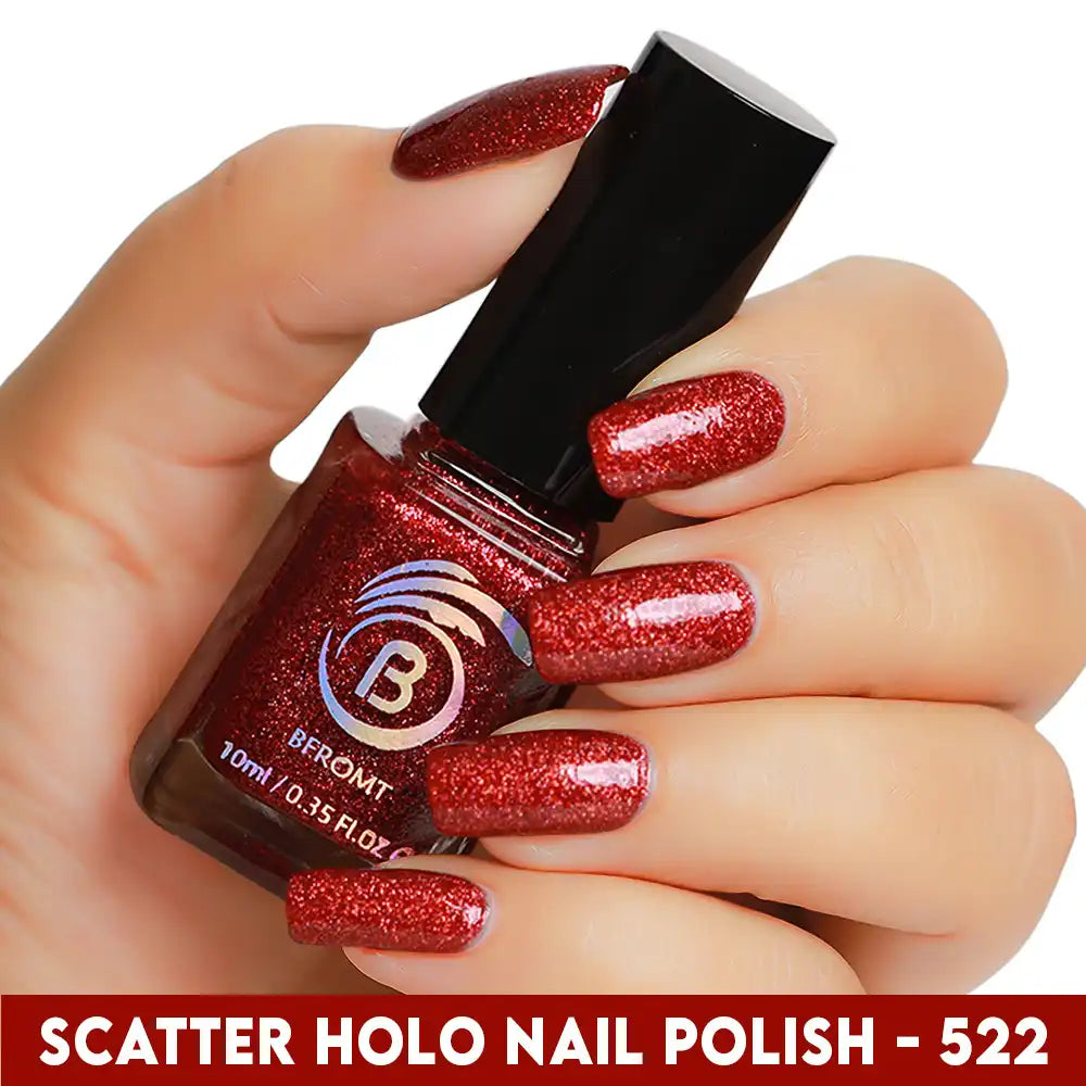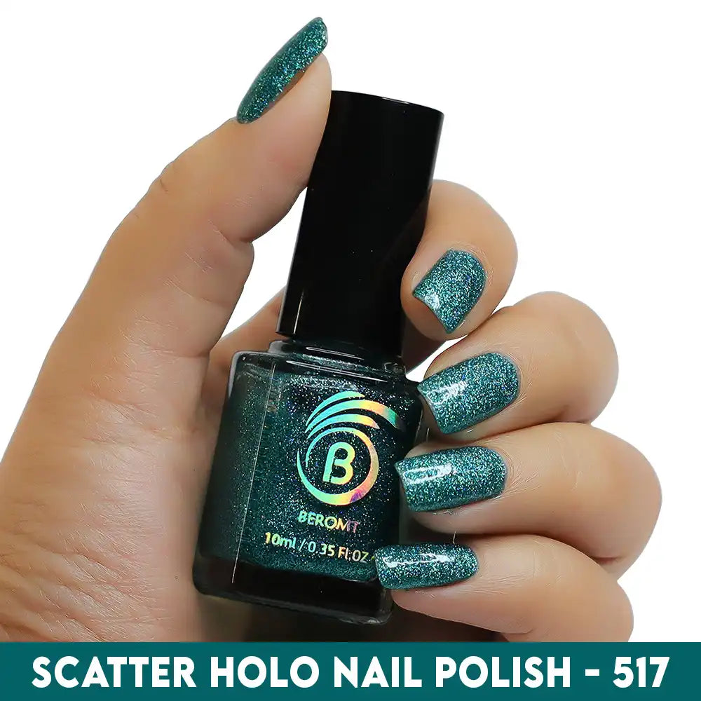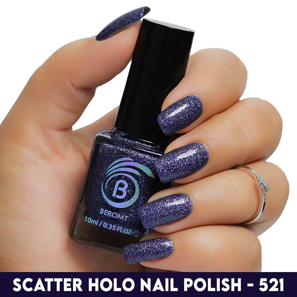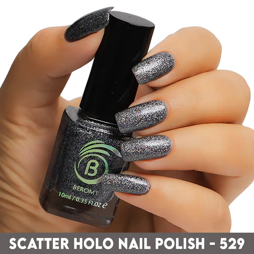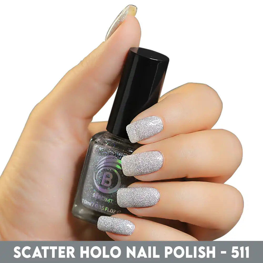 Our Scattered Holographic Nail Polish is formulated for long-lasting wear, but like any nail polish, it can chip with heavy use or rough treatment. To prolong the wear of your manicure, we recommend applying a quality Base Coat before applying the holographic polish and sealing it with a top coat for added protection.