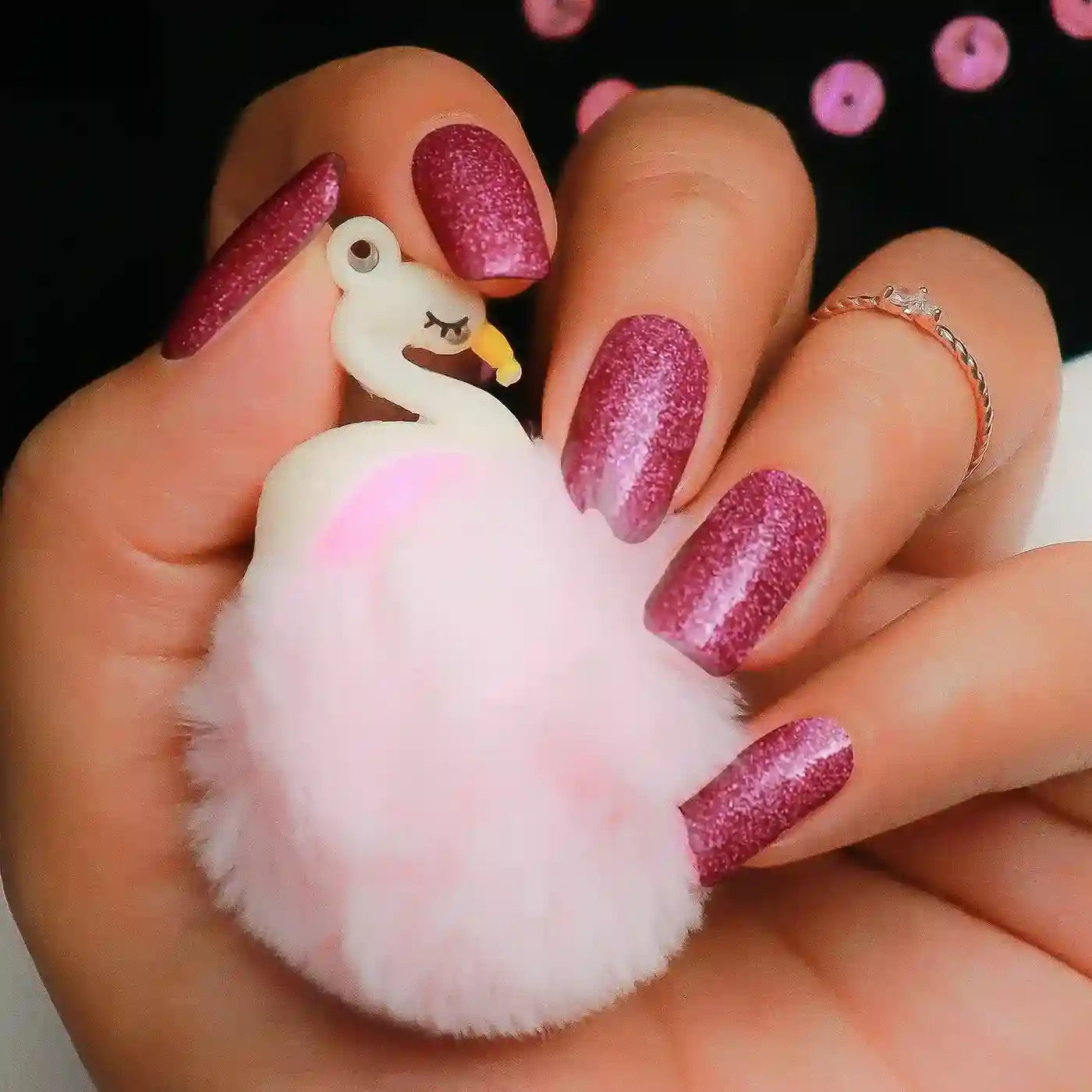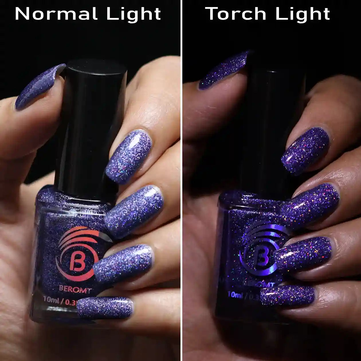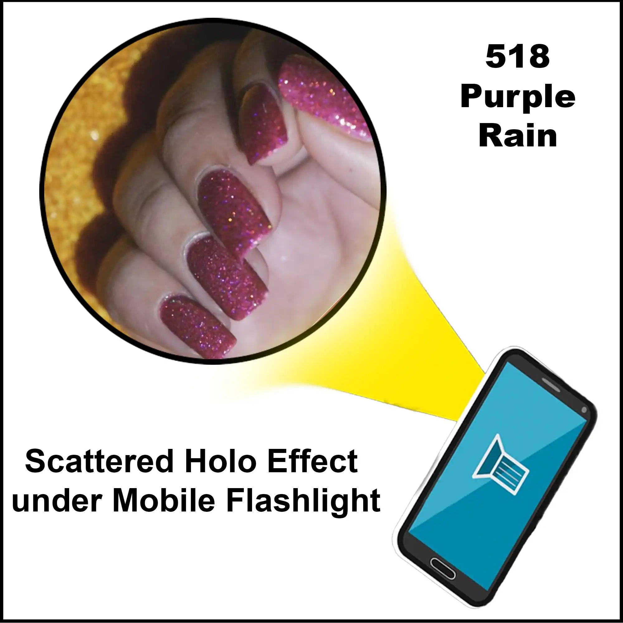 Purple Rain is a purple metallic holo with pink to purple shimmer. Uniquely blended with sterling silver metallic flakes and a precise amount of holo glitters, you will be sure to enjoy these colors in the winter season! It is a gorgeous dark purple holographic polish with different sizes of micro holographic glitters throughout! A stunningly deep purple holo nail polish with endless depth! Showcasing a significant ratio of holographic micro-flakes, Purple Rain is balanced with a captivating assortment of vivid micro-flakes. This gemstone-inspired shade shines bright, mimicking the fire and scintillation of precious jewels. Turn on your mobile flashlight, focus it on your holo nails and watch the beautiful holographic effect come alive. Shine 0n!!