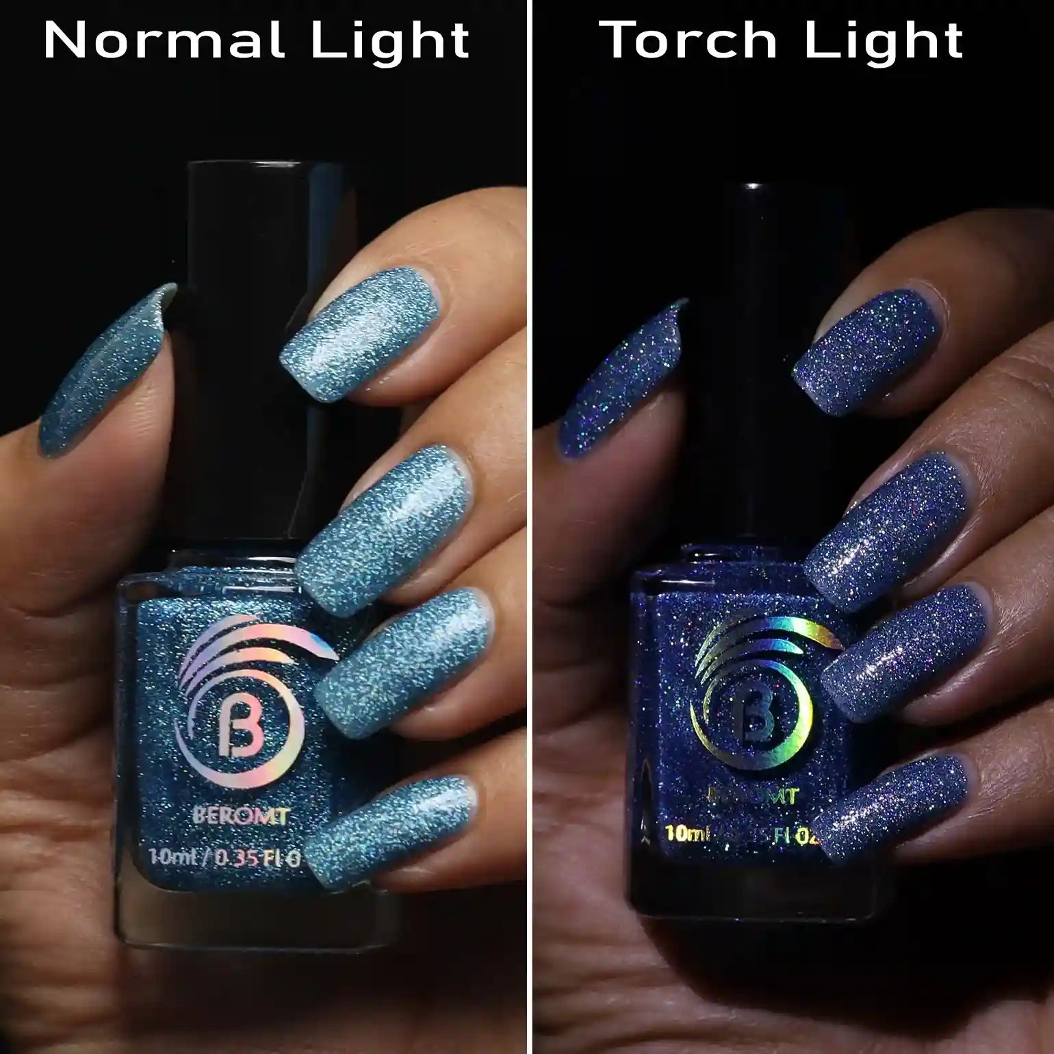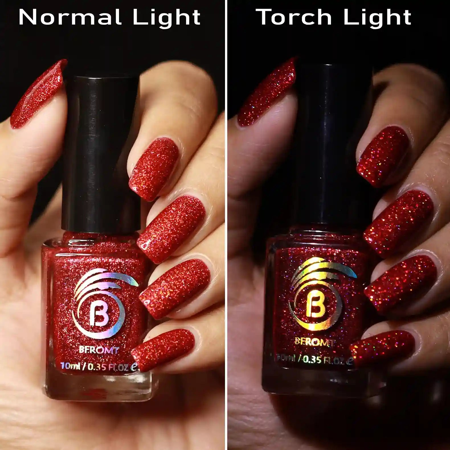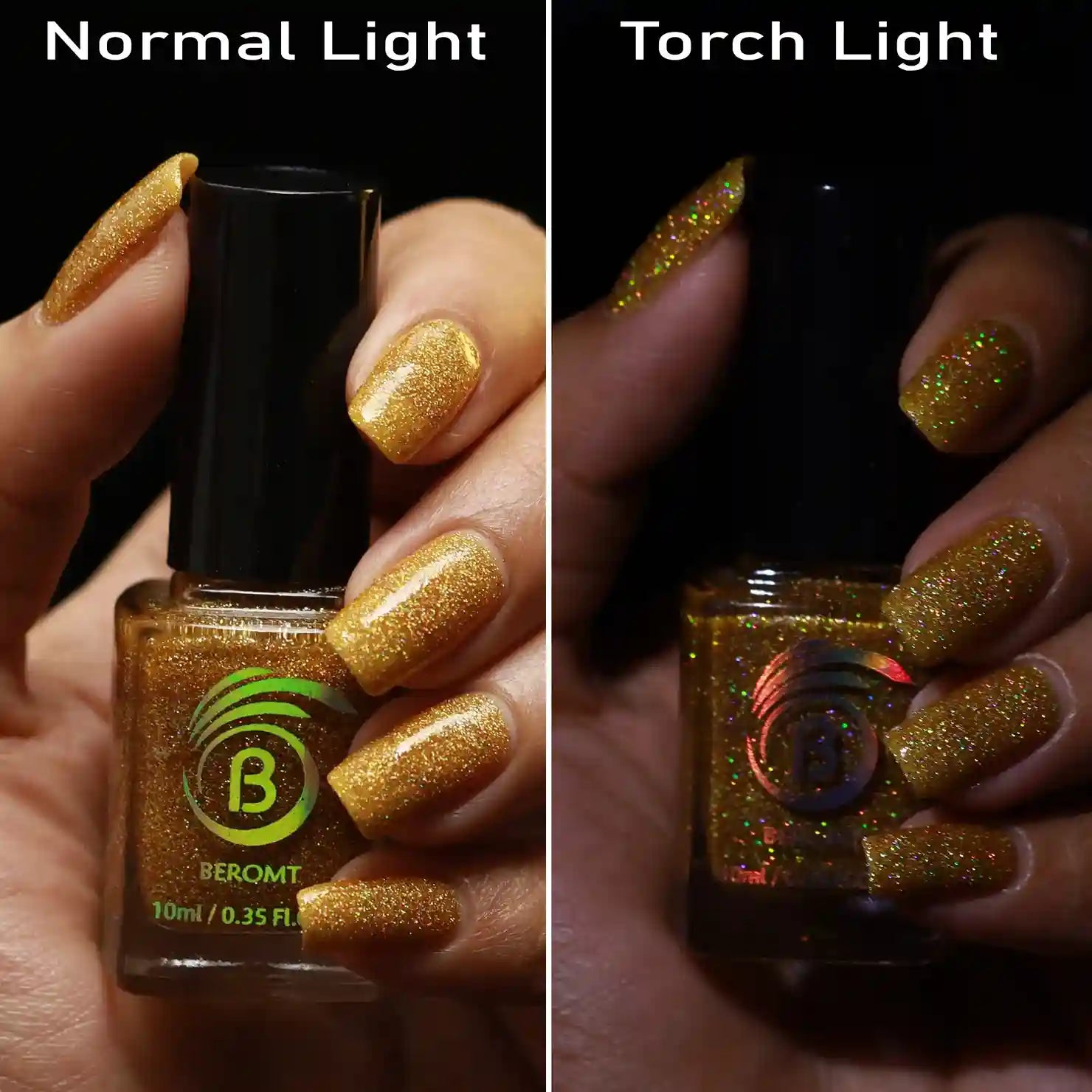 For an enhanced holographic effect, use a mobile torch or expose your nails to sunlight. The light will bring out the stunning rainbow colors and add a dazzling finish to your manicure.