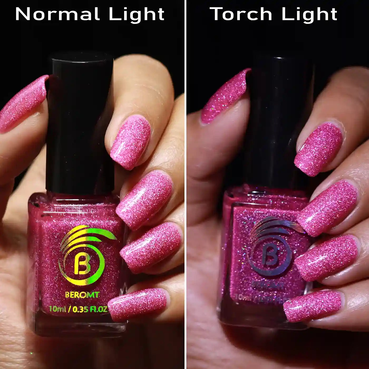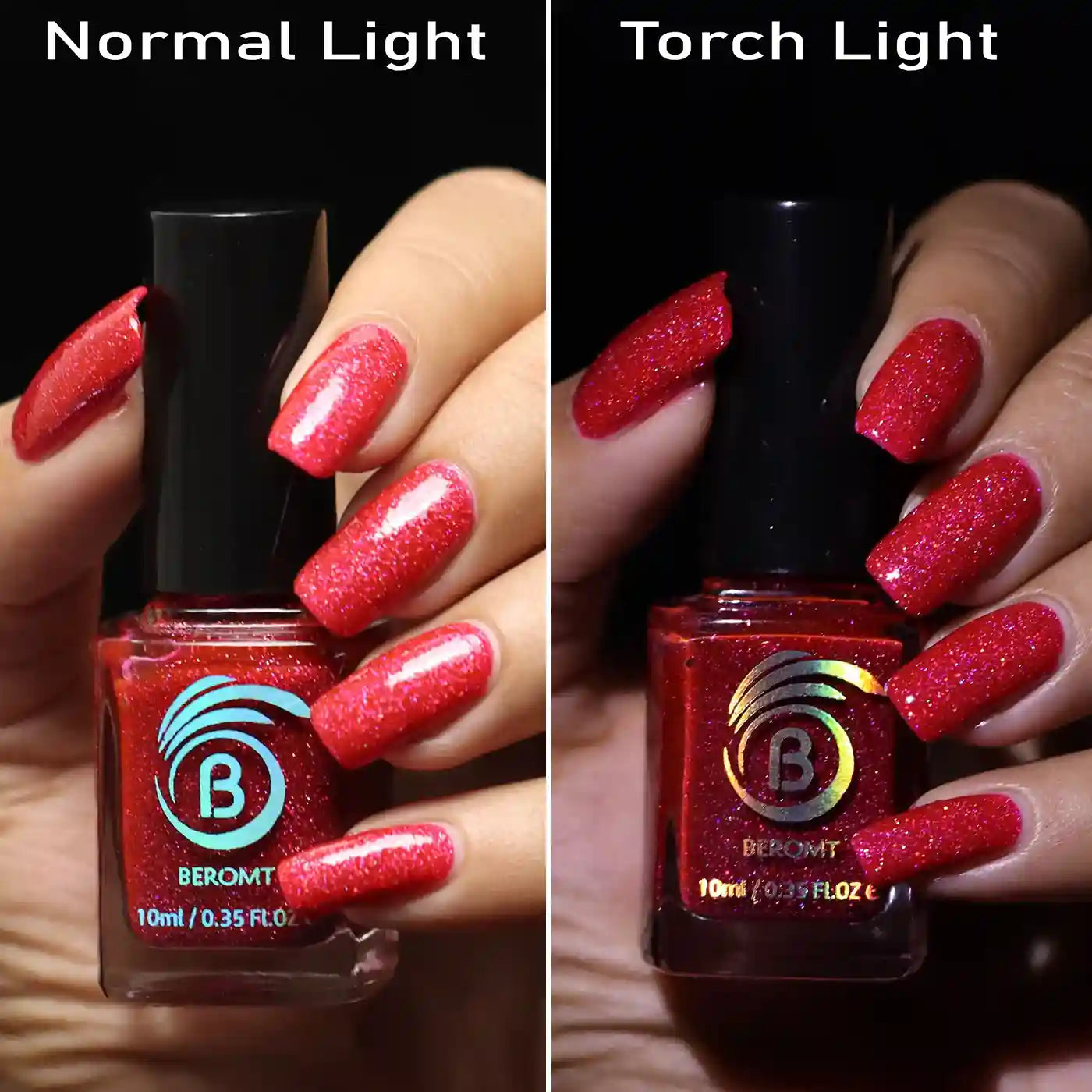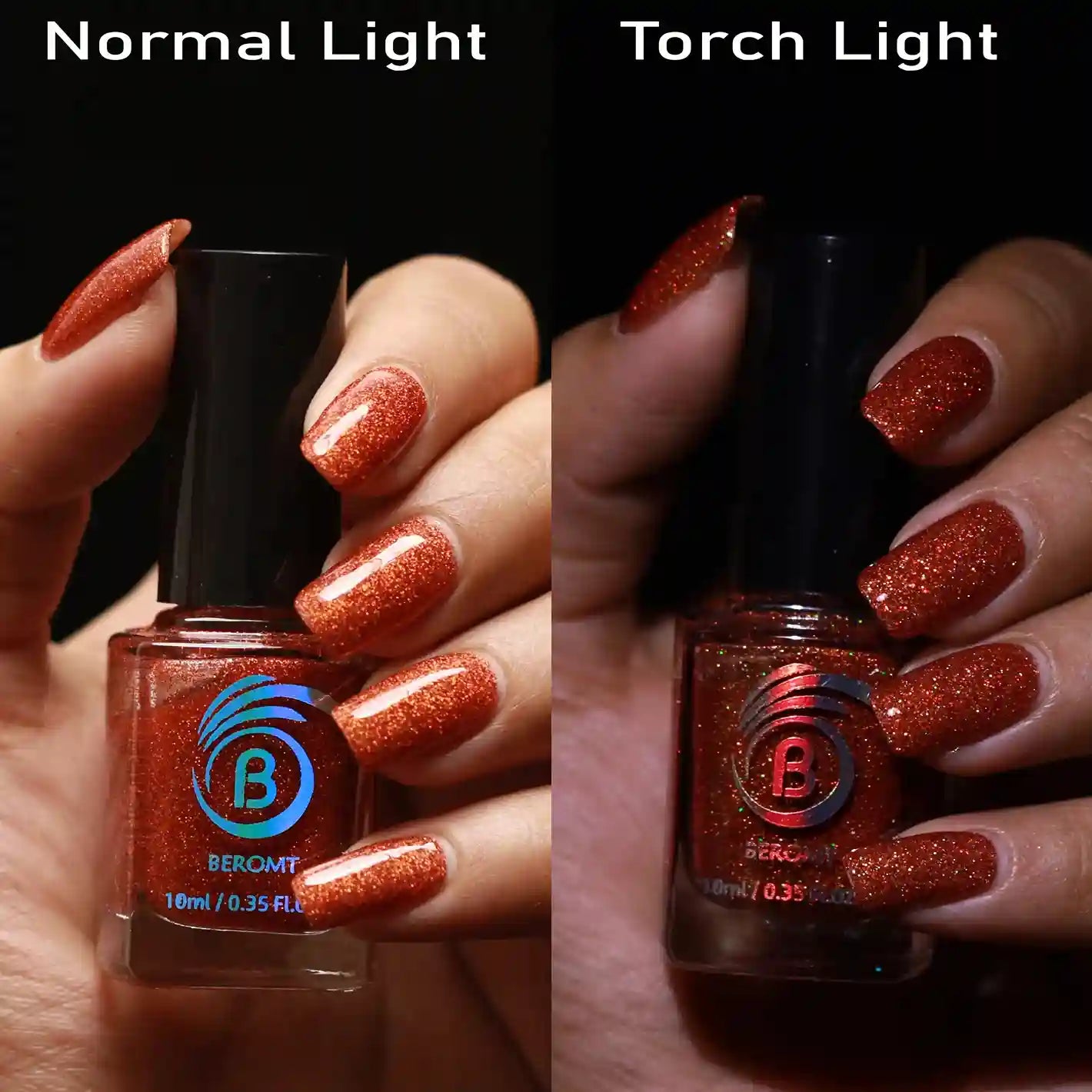 For an enhanced holographic effect, use a mobile torch or expose your nails to sunlight. The light will bring out the stunning rainbow colors and add a dazzling finish to your manicure.