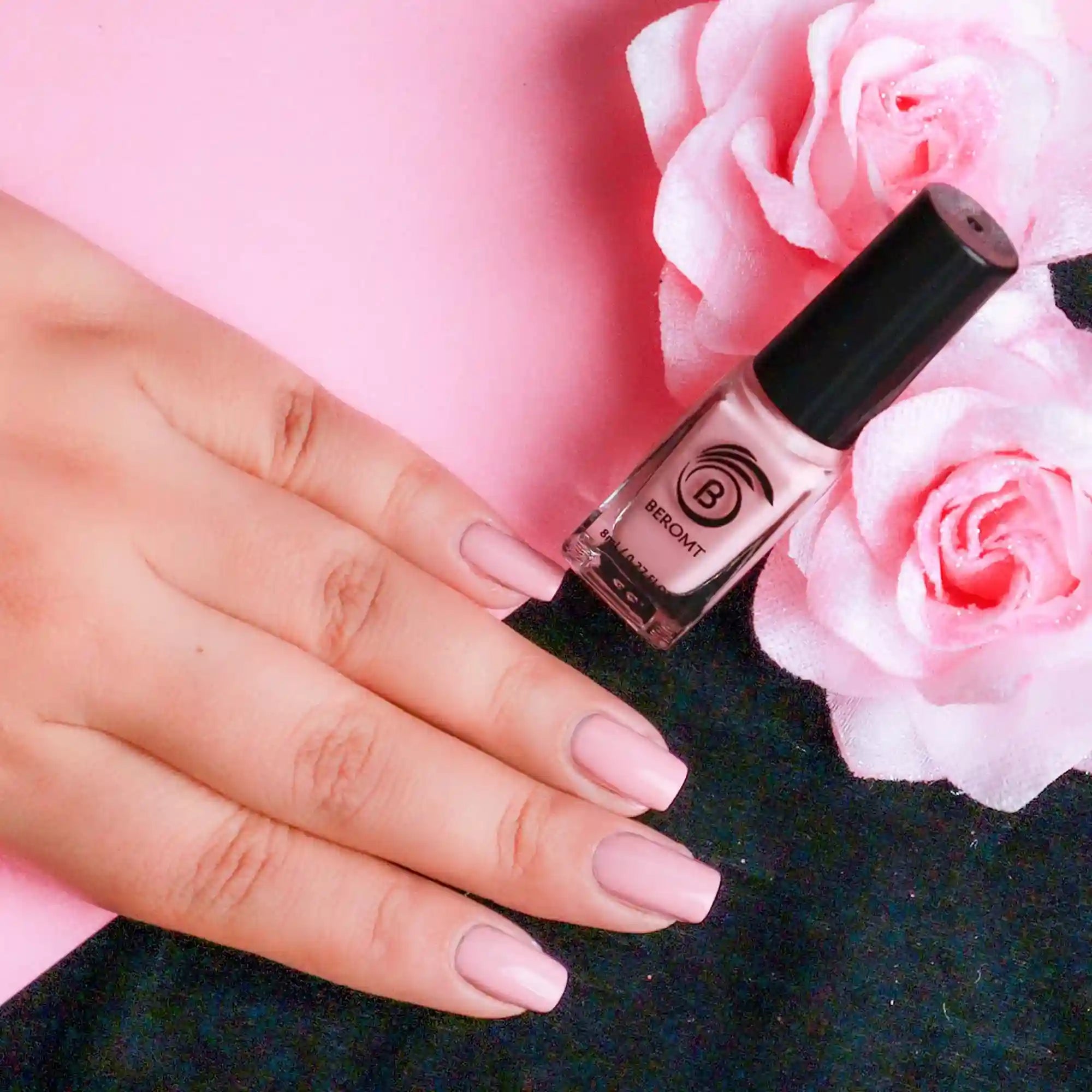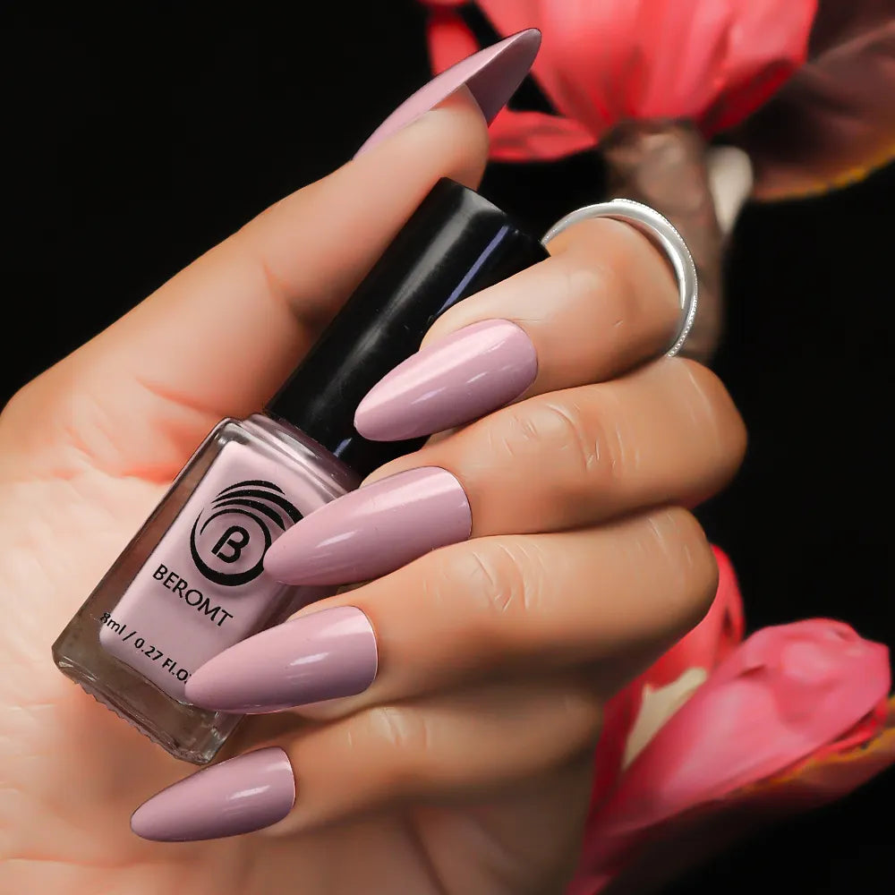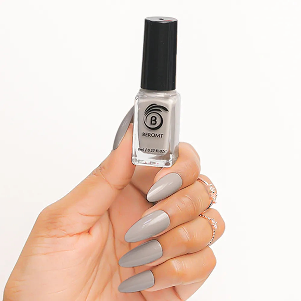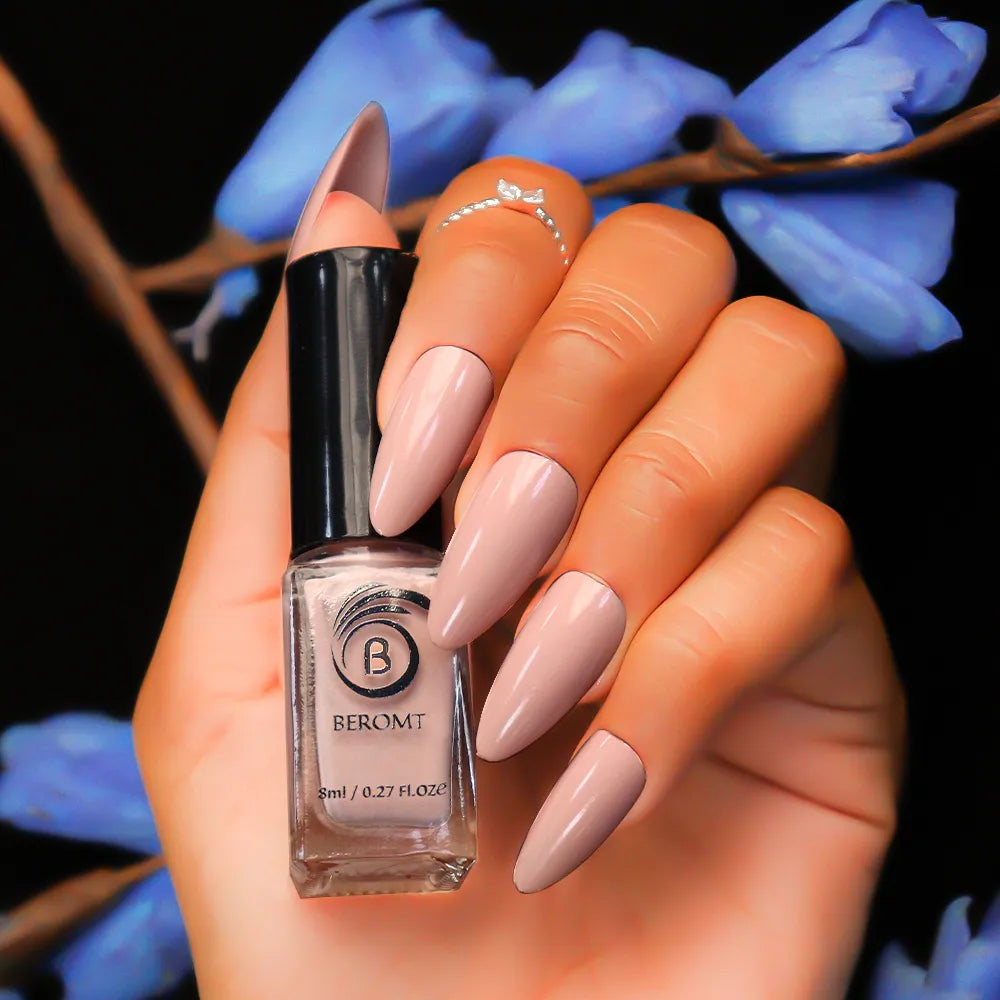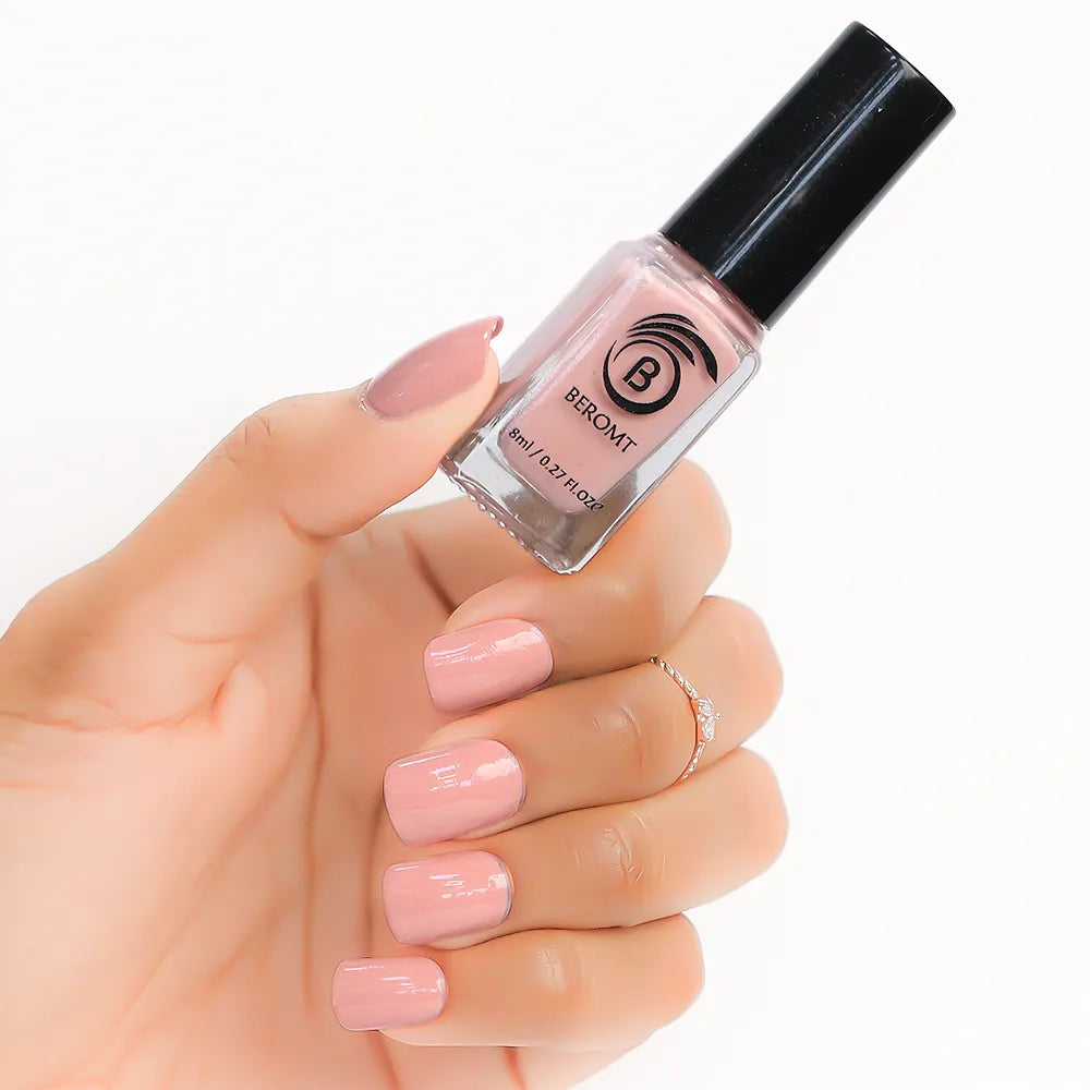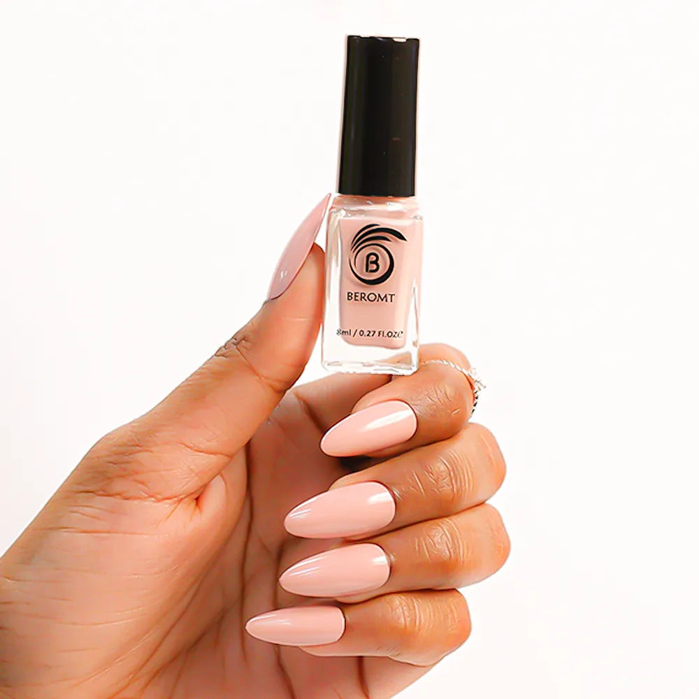Apply one coat of Beromt Smoothing Base to prepare your nails. This base coat will create an even surface and help the nail polish adhere better. Let it dry completely.