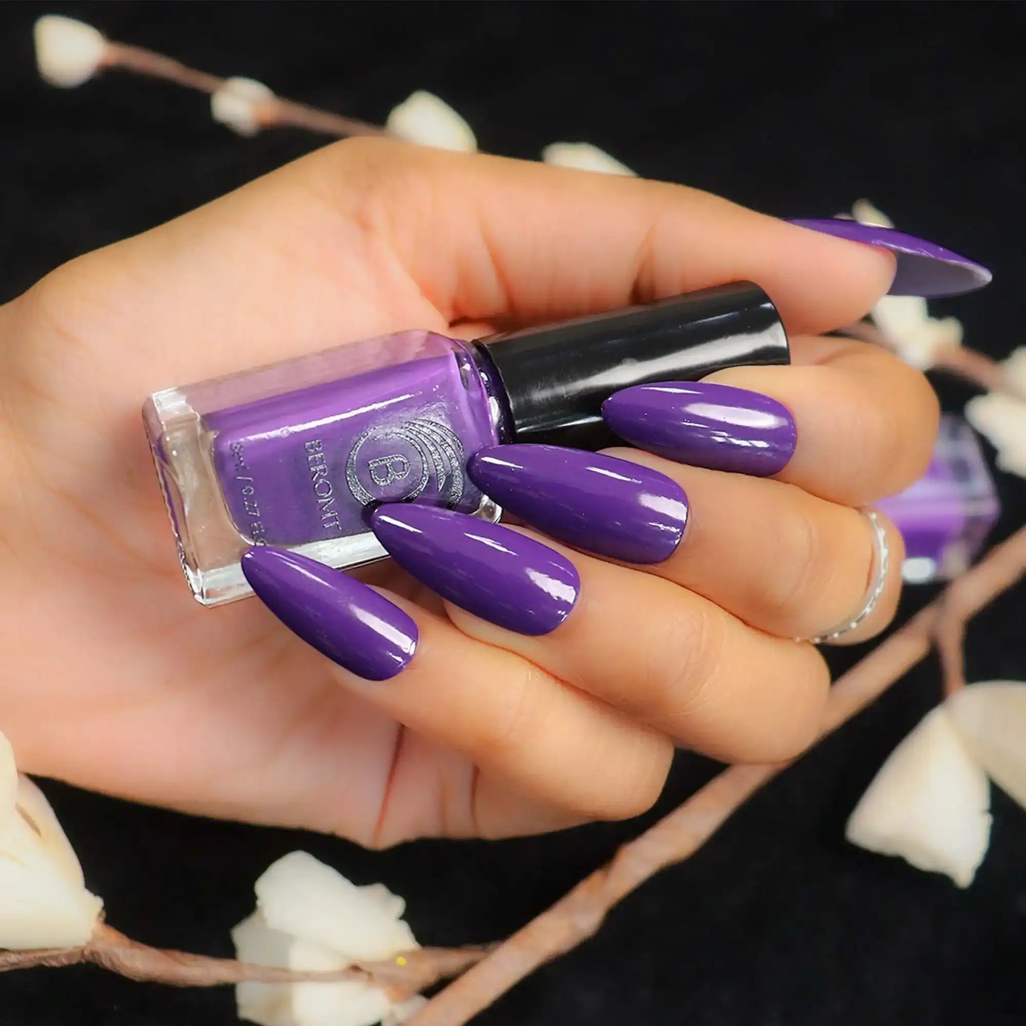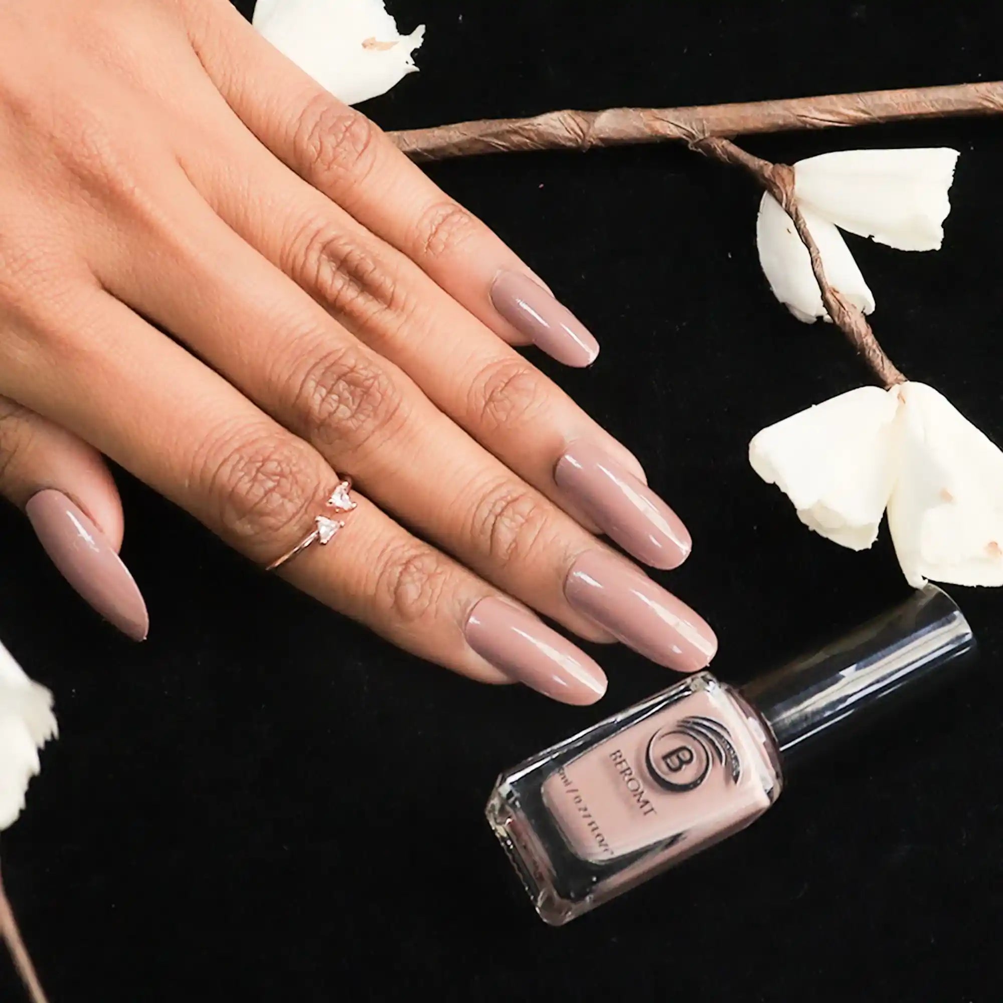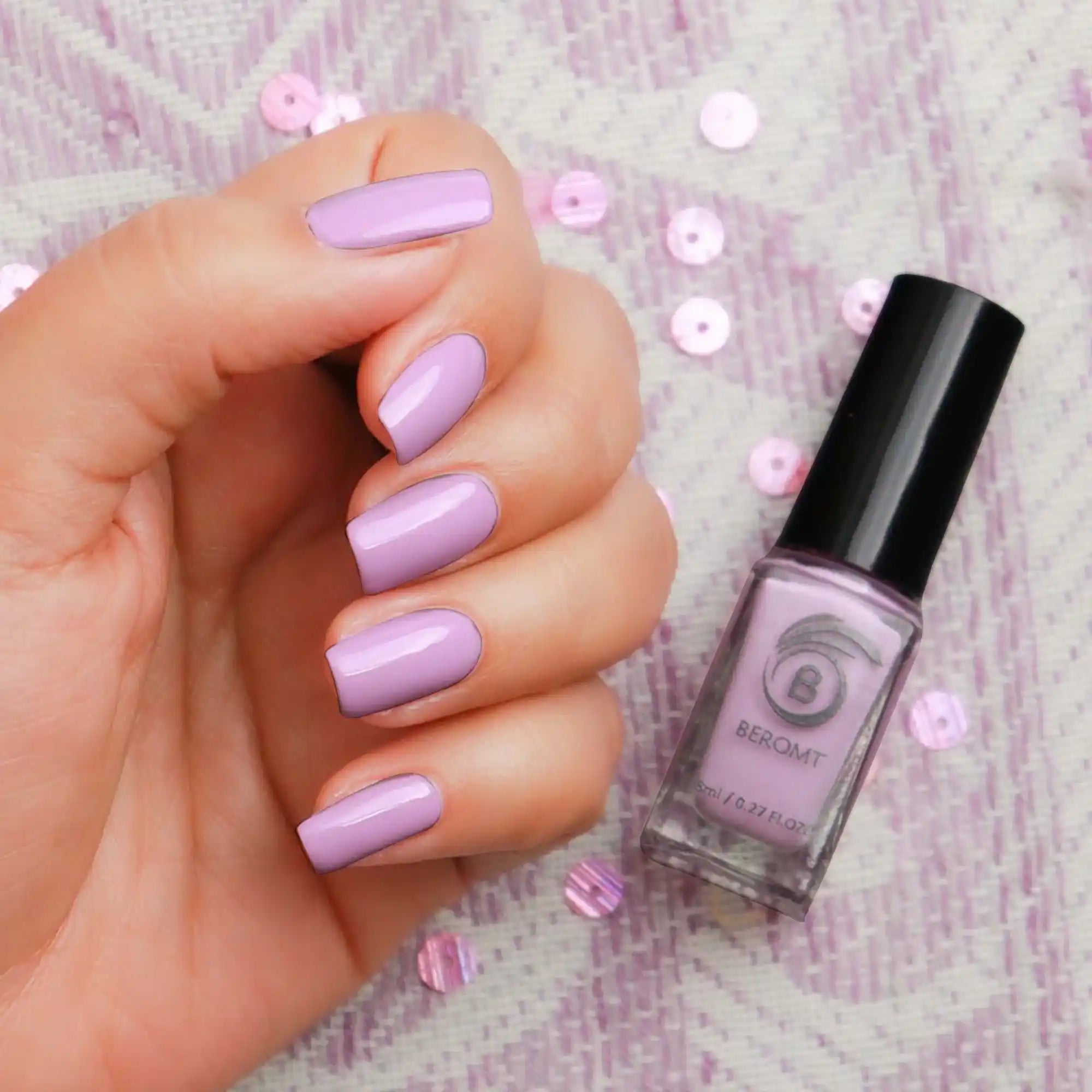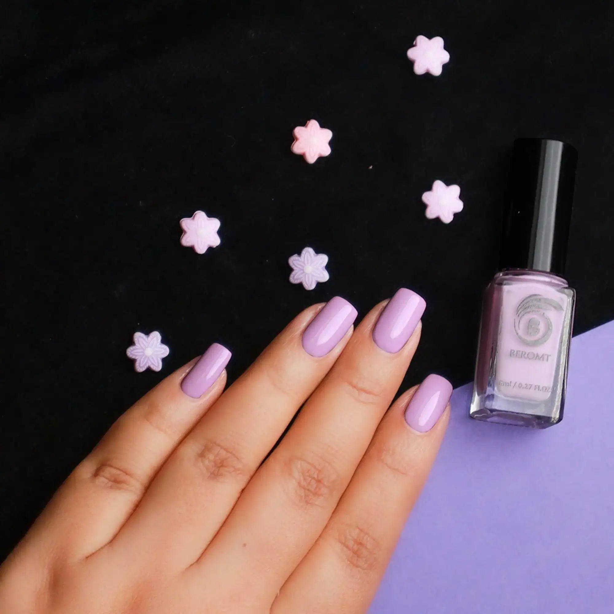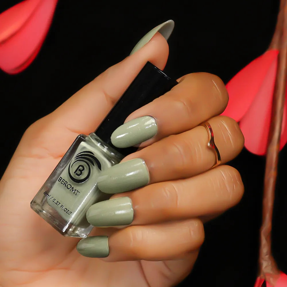 Apply one coat of Beromt Smoothing Base to prepare your nails. This base coat will create an even surface and help the nail polish adhere better. Let it dry completely.