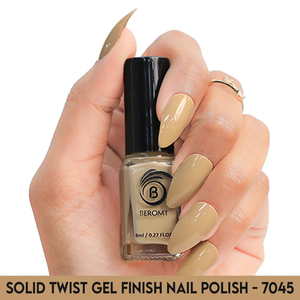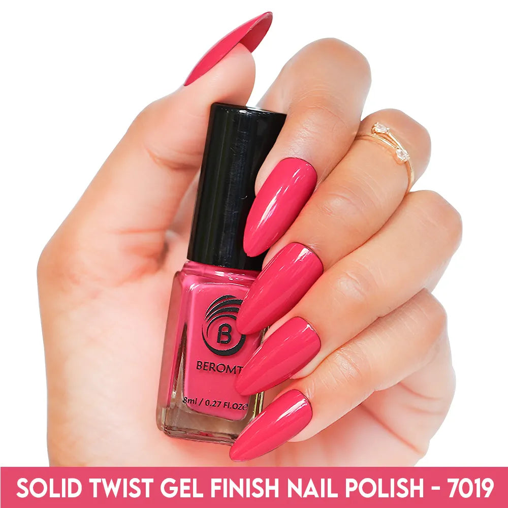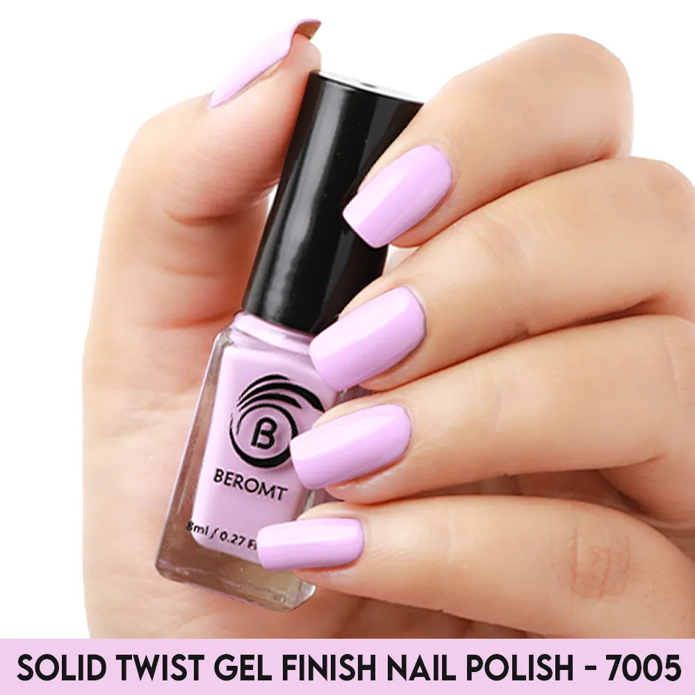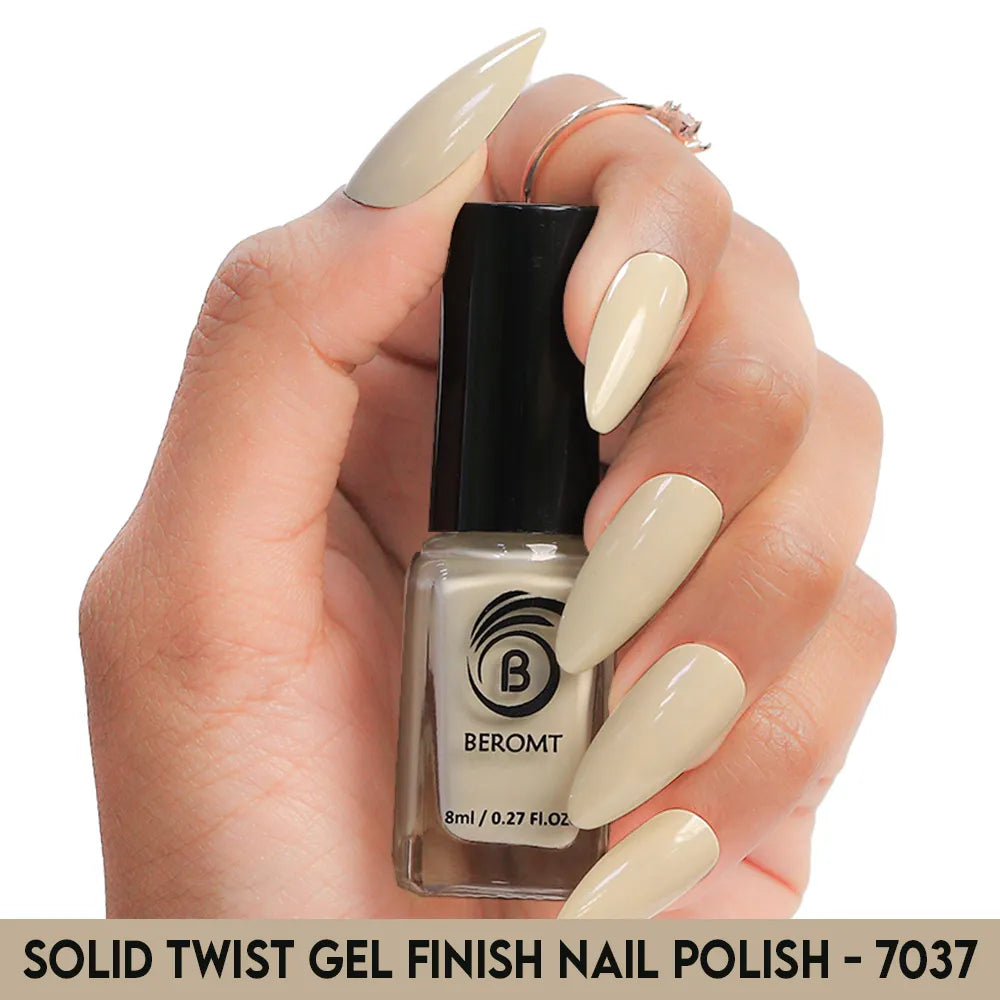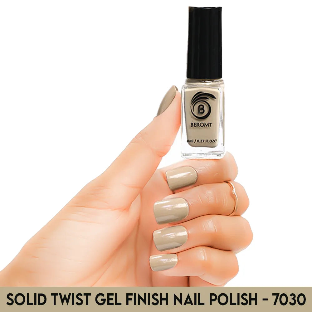 Beromt Solid Twist is a quick-drying gel finish nail polish made with the special formula and ingredients that set the colour in just a few seconds. The lacquer's smooth texture allows for a flawless application. The formula & ingredients boost the lacquer & shine for an extra-bright finish. Thanks to the large, bristle-packed brush, it's simple to take the perfect amount of product and brush it evenly on the nails without leaving streaks.