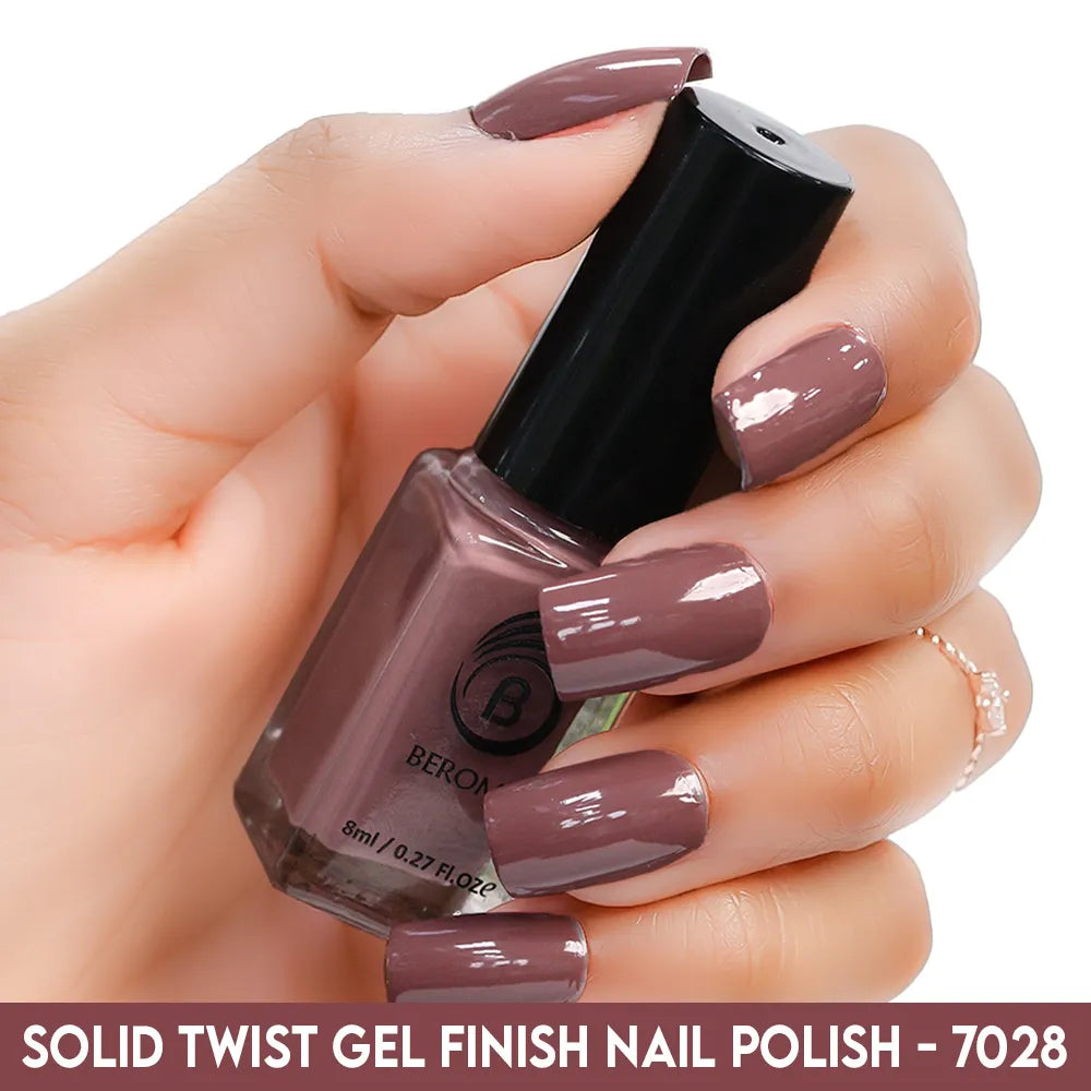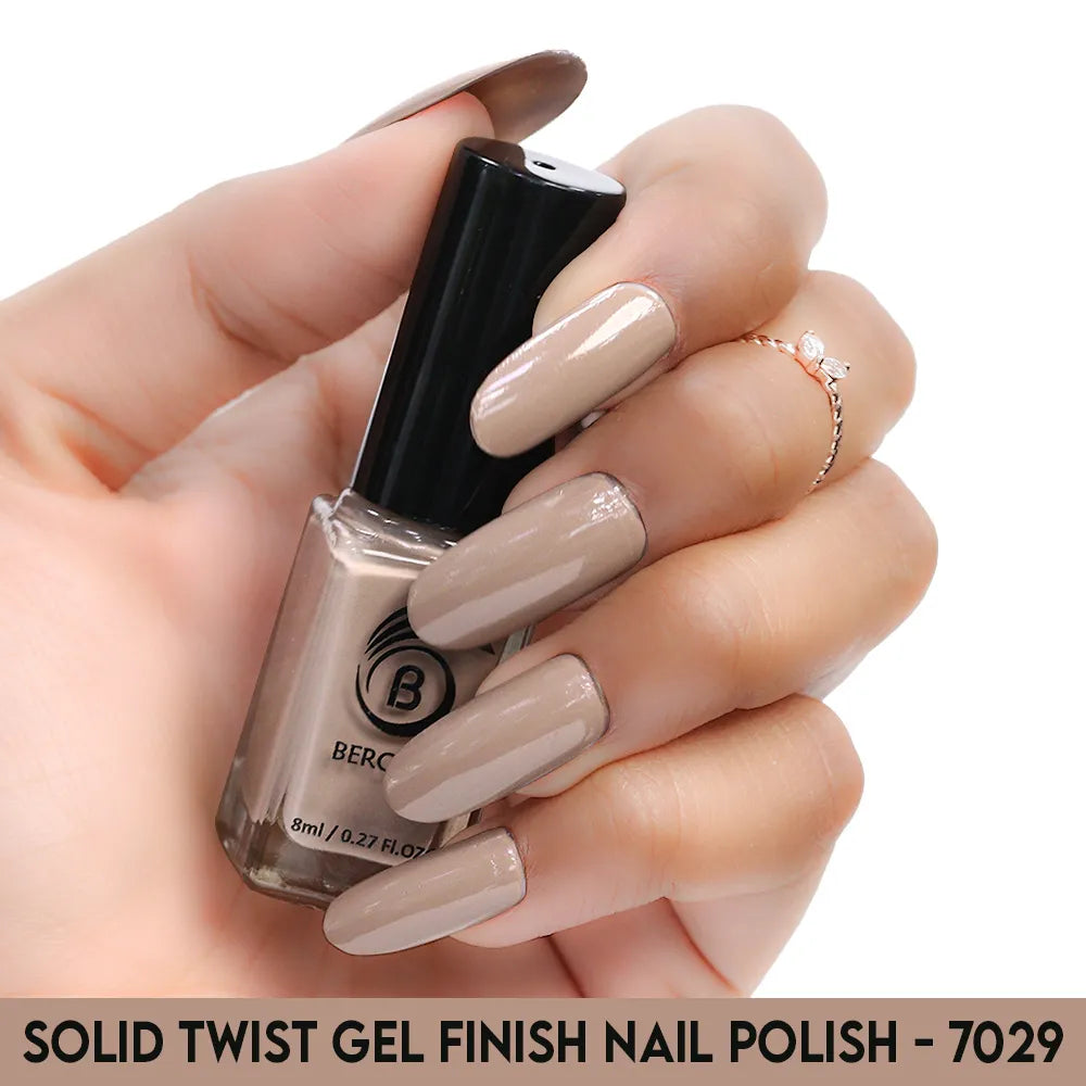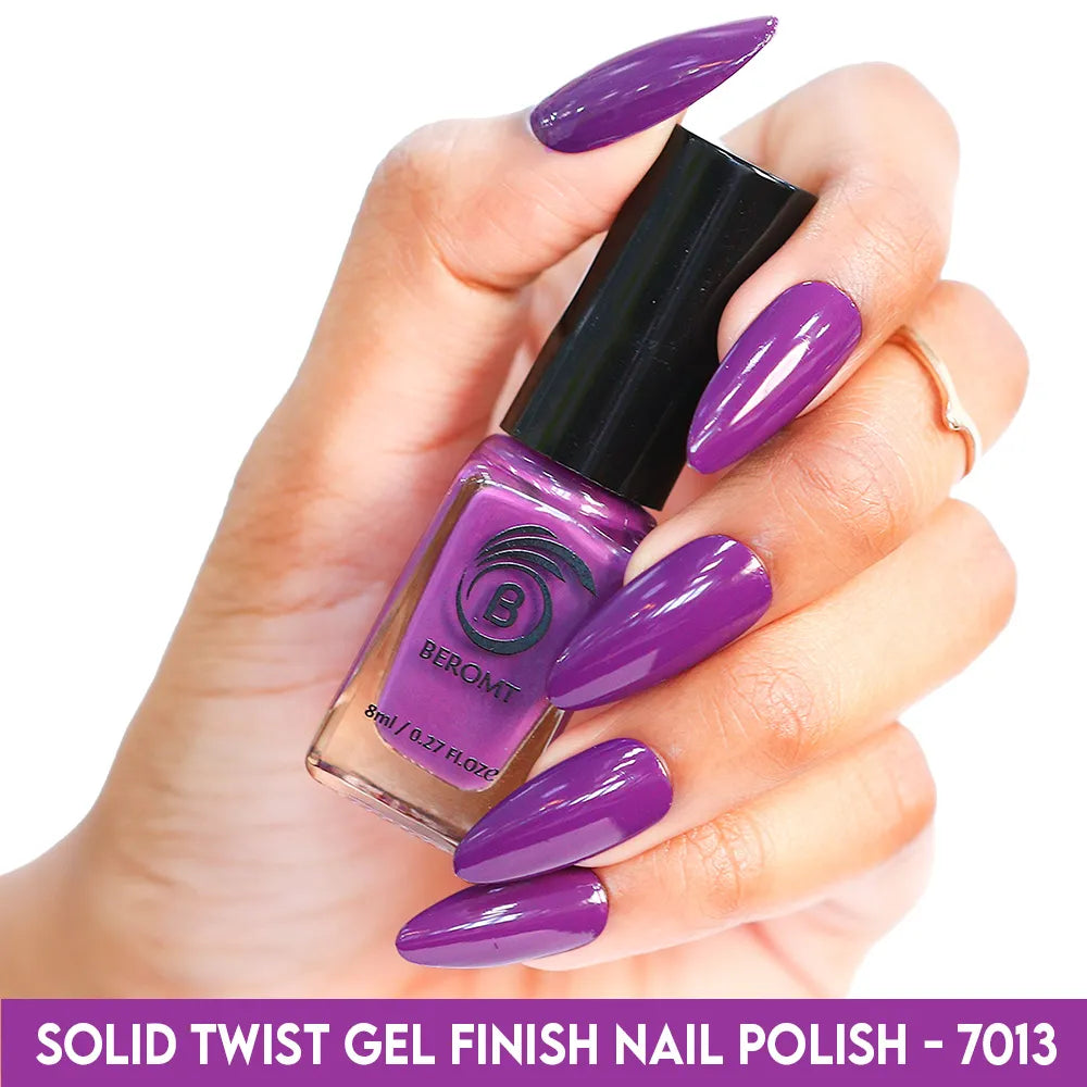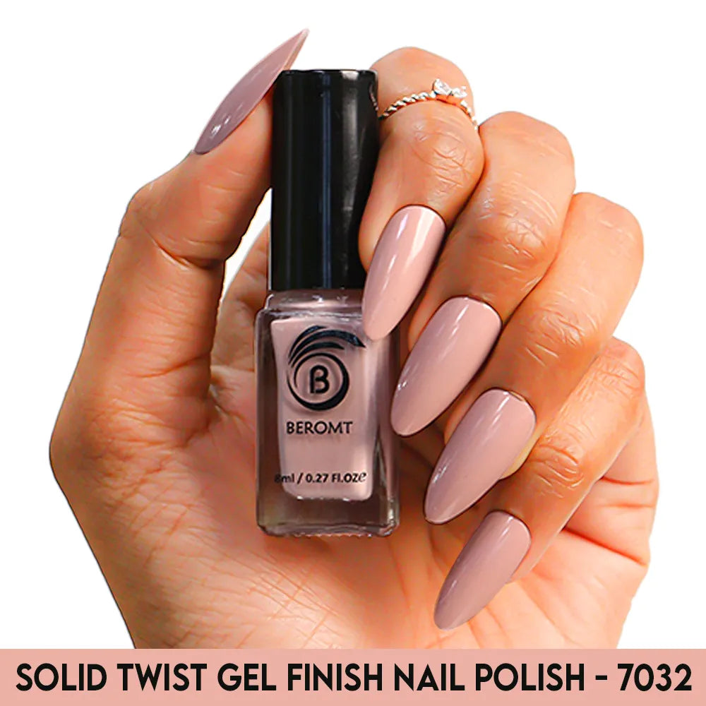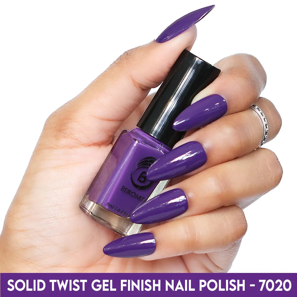 Beromt Solid Twist is a quick-drying gel finish nail polish made with the special formula and ingredients that set the colour in just a few seconds. The lacquer's smooth texture allows for a flawless application. The formula & ingredients boost the lacquer & shine for an extra-bright finish. Thanks to the large, bristle-packed brush, it's simple to take the perfect amount of product and brush it evenly on the nails without leaving streaks.