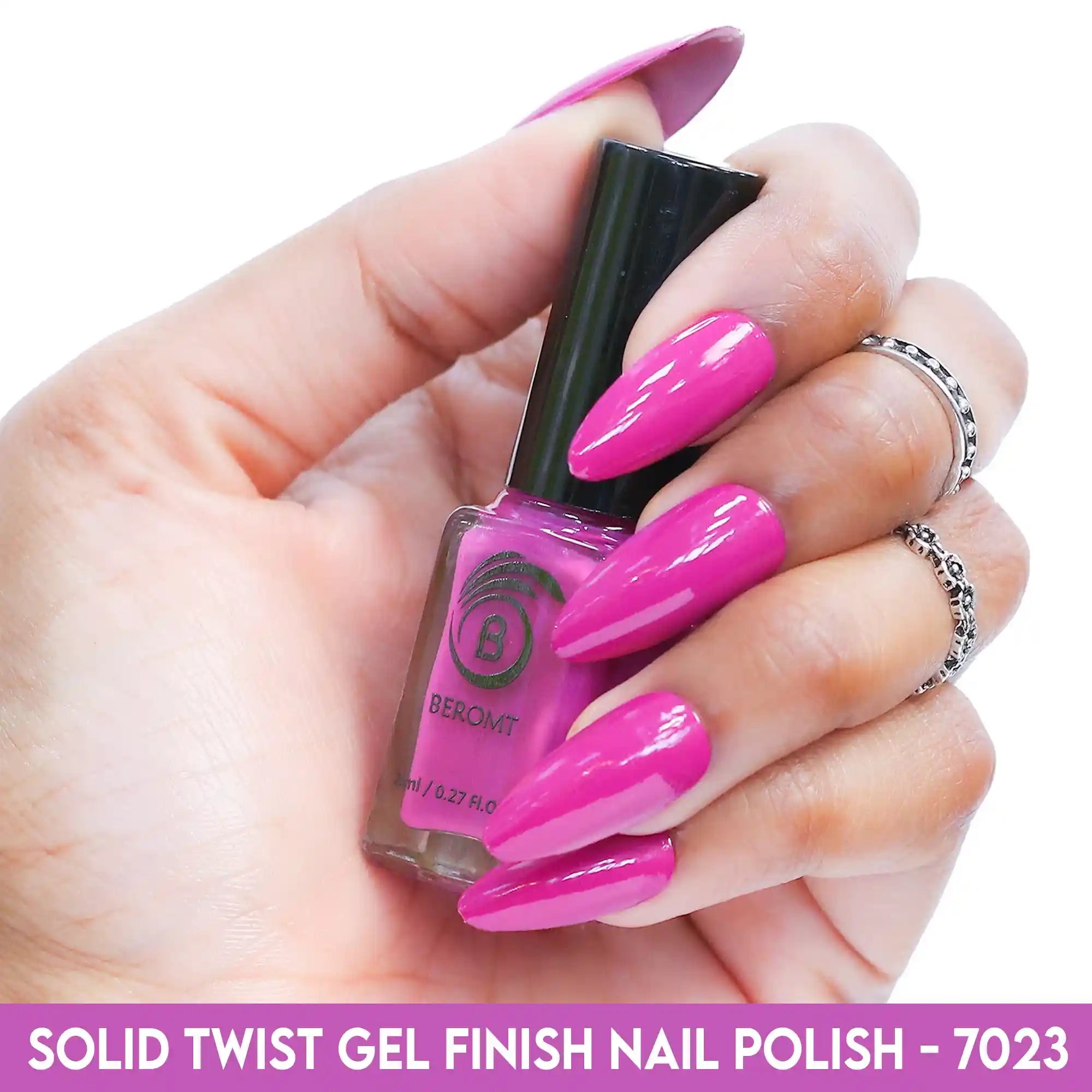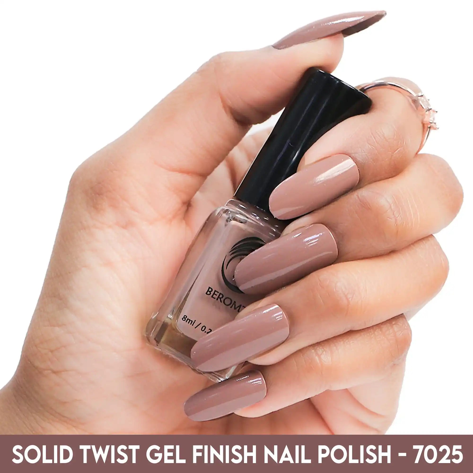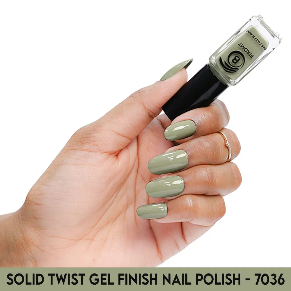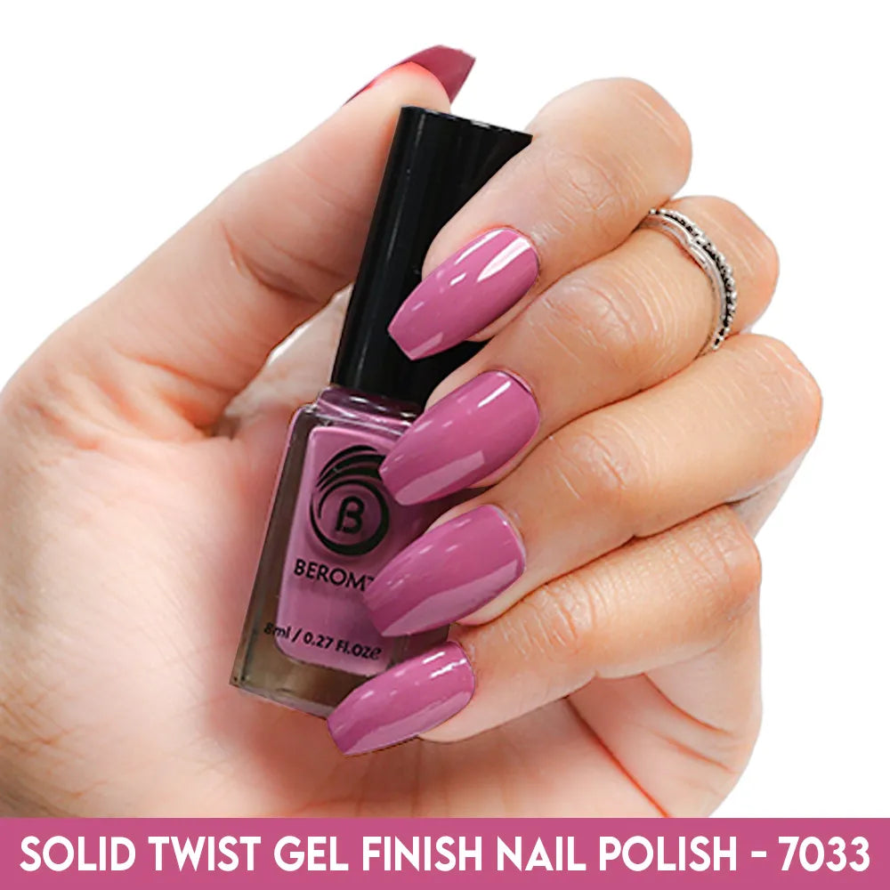 Beromt Solid Twist is a quick-drying gel finish nail polish made with the special formula and ingredients that set the colour in just a few seconds. The lacquer's smooth texture allows for a flawless application. The formula & ingredients boost the lacquer & shine for an extra-bright finish. Thanks to the large, bristle-packed brush, it's simple to take the perfect amount of product and brush it evenly on the nails without leaving streaks.