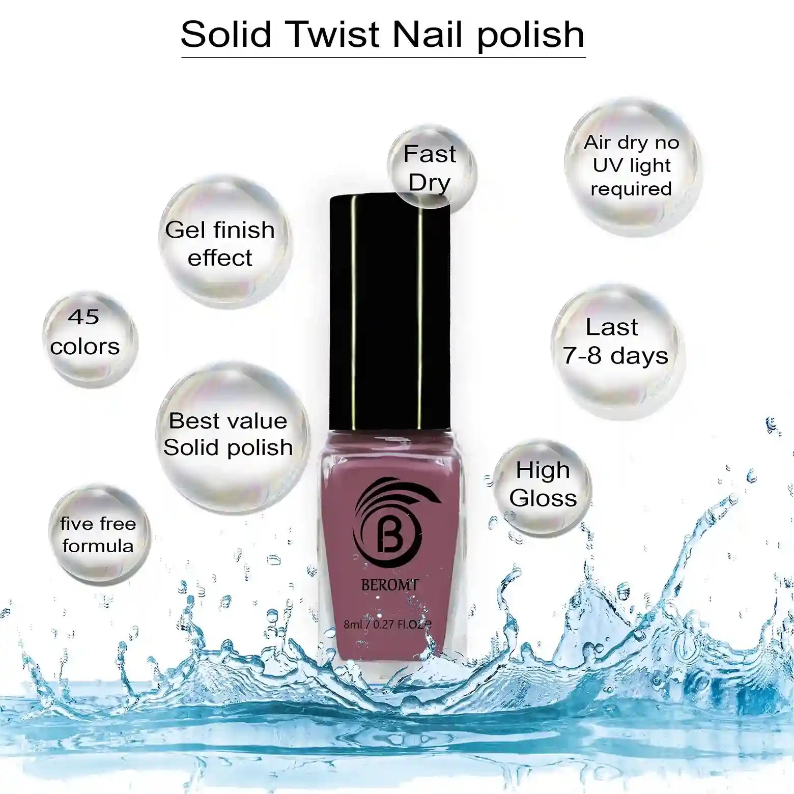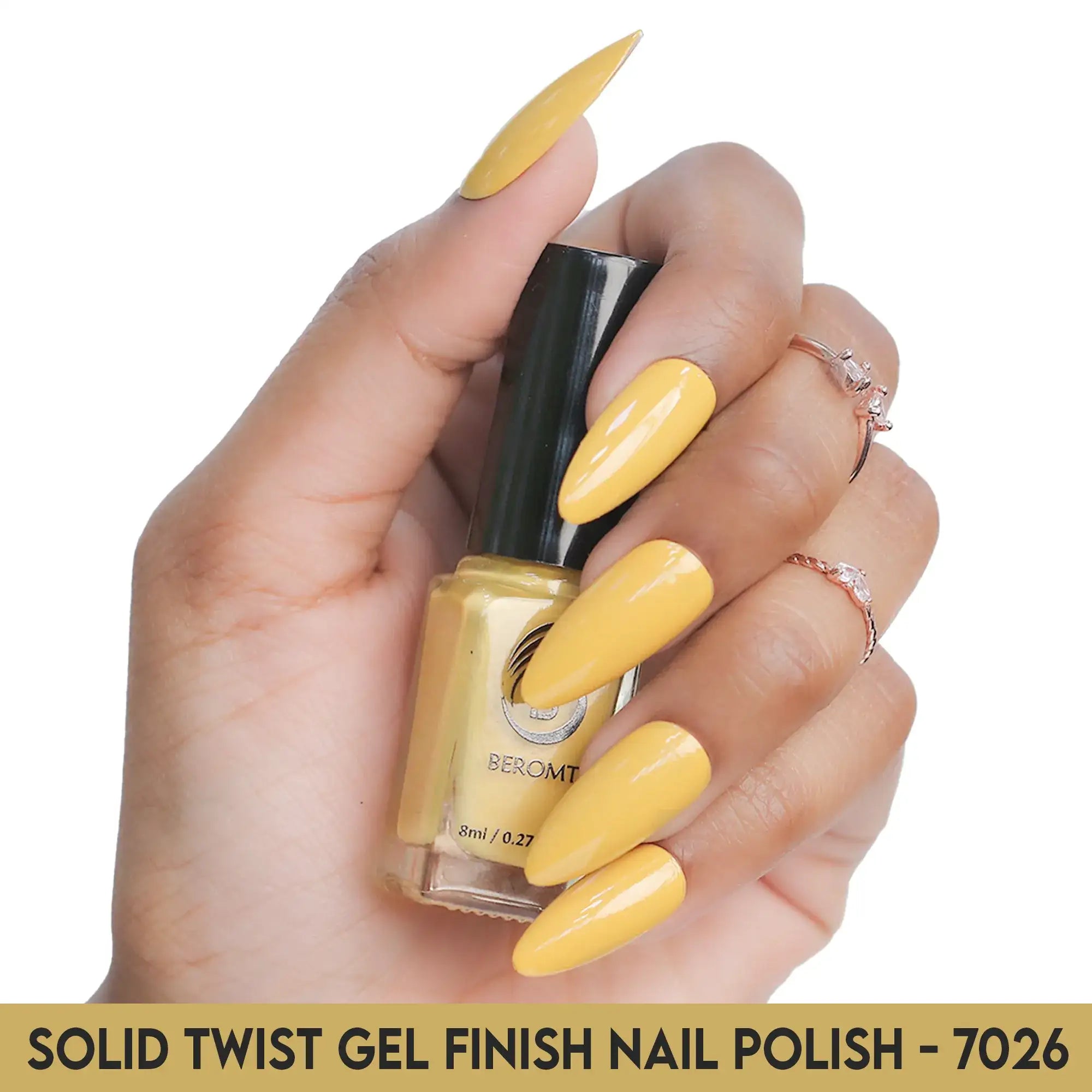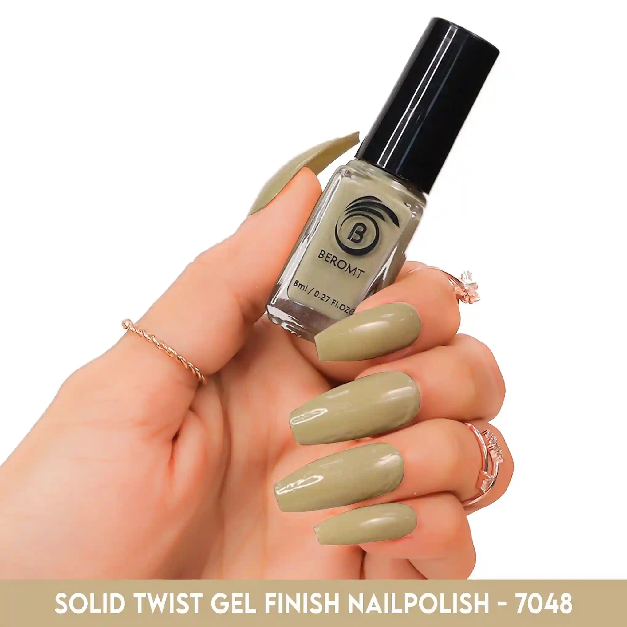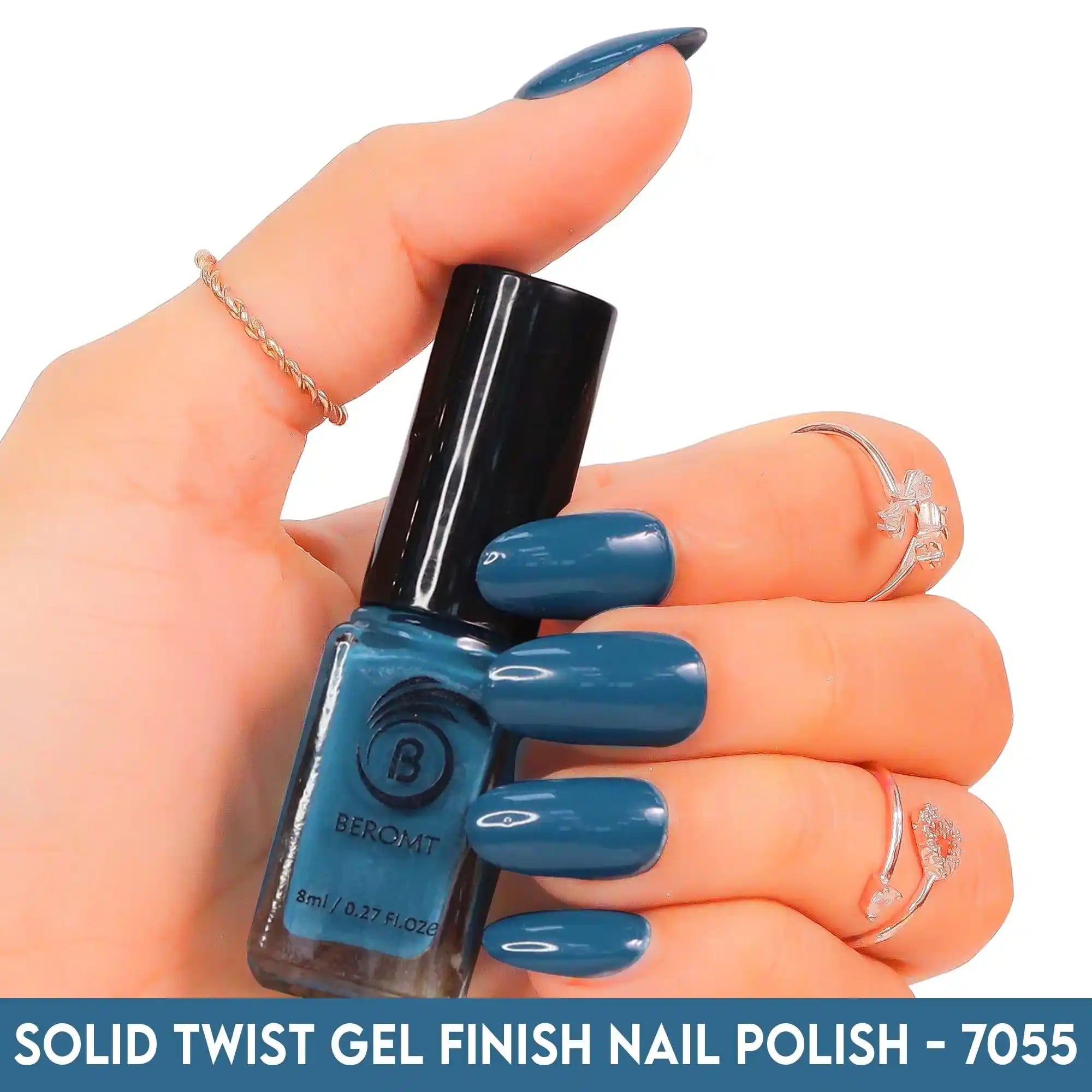 Beromt Solid Twist is a quick-drying gel finish nail polish made with the special formula and ingredients that set the colour in just a few seconds. The lacquer's smooth texture allows for a flawless application. The formula & ingredients boost the lacquer & shine for an extra-bright finish. Thanks to the large, bristle-packed brush, it's simple to take the perfect amount of product and brush it evenly on the nails without leaving streaks.