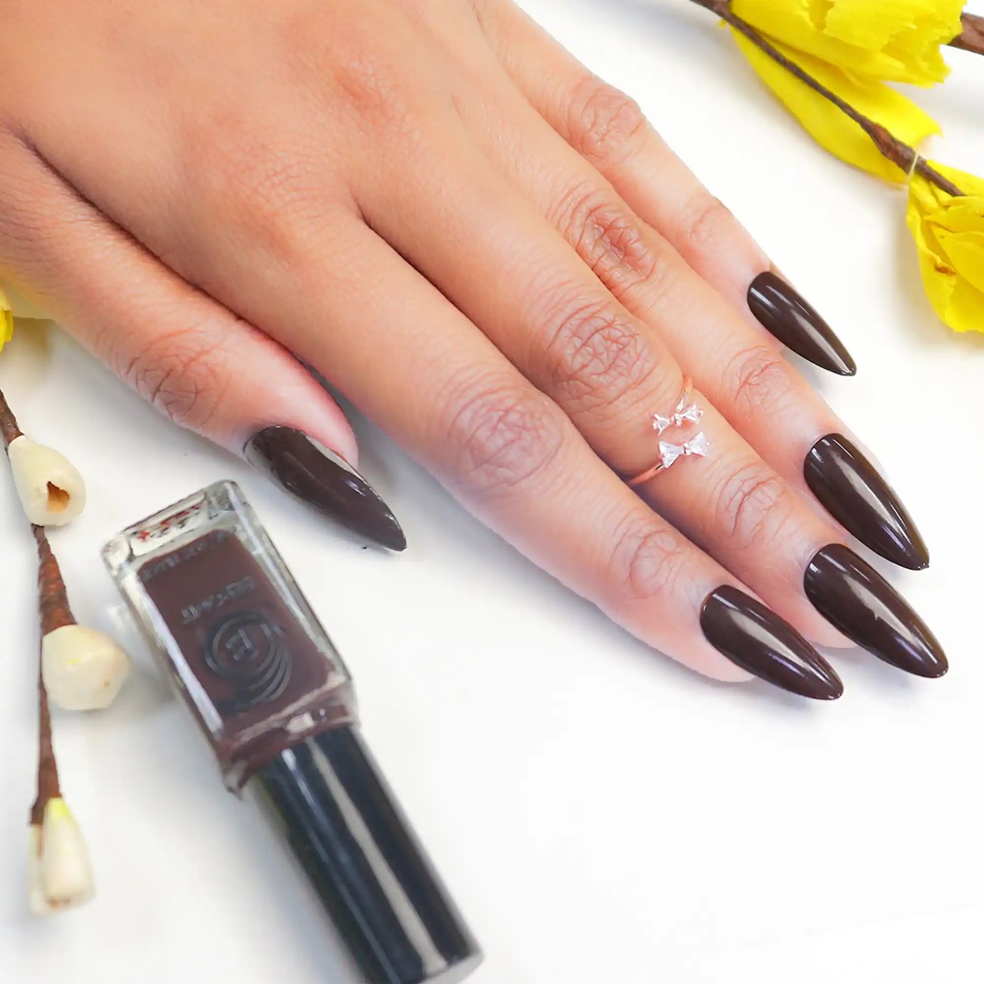 Our Solid Twist Gel Finish Nail Polish is formulated to dry relatively quickly compared to traditional nail polish. Depending on the thickness of the coats applied and environmental factors, such as humidity and temperature, the polish typically dries within 5-10 minutes.