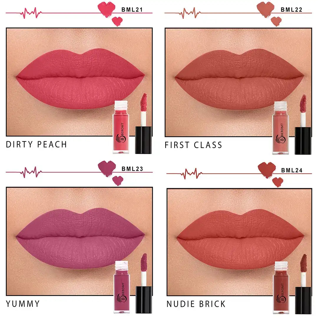 Get ready to slay with the Beromt Super Stay Matte Mini Lipsticks. Compact, versatile, and cruelty-free – these minis are here to make your lips pop with style and confidence!