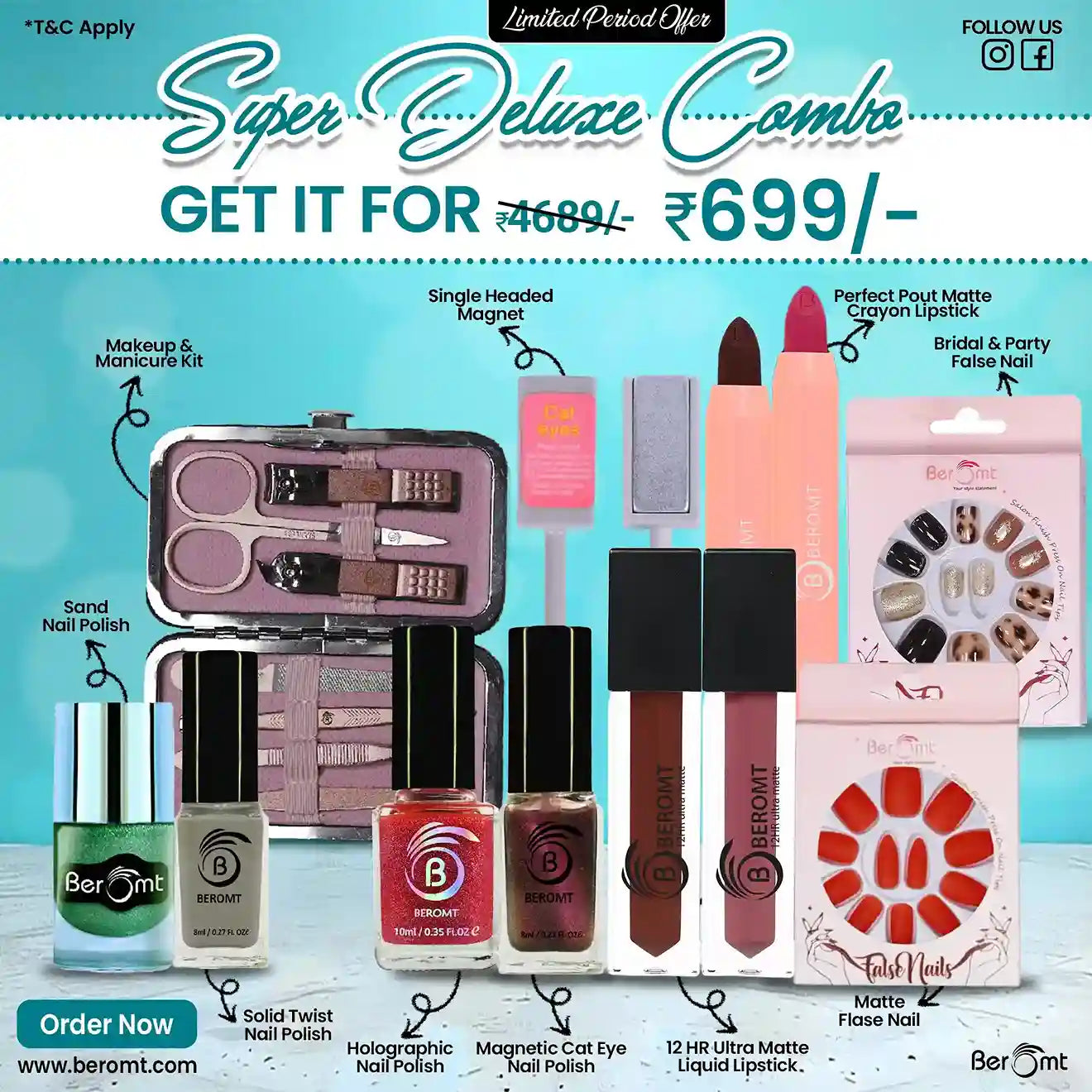 Beromt bring a package of happiness that contains everything you need right from lipstick to nail polish, we have it all in one package.